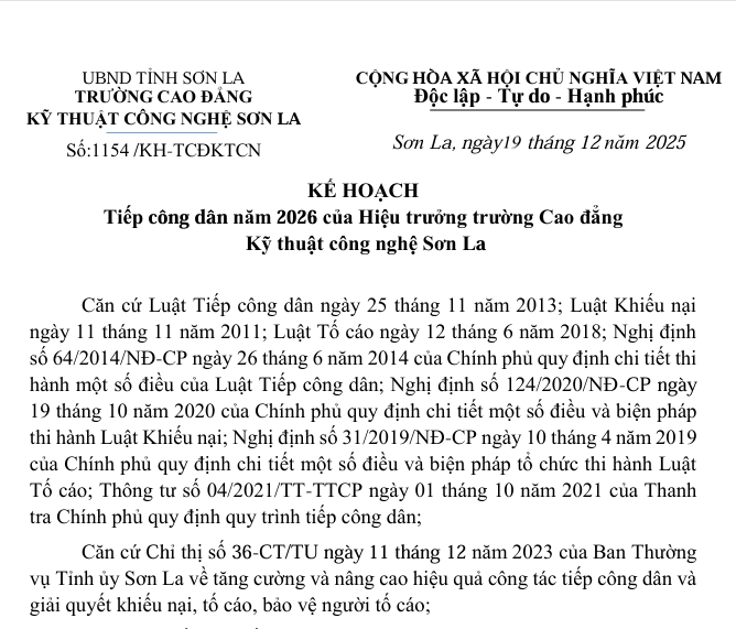 Trường Cao Đẳng Kỹ Thuật Công Nghệ Sơn La