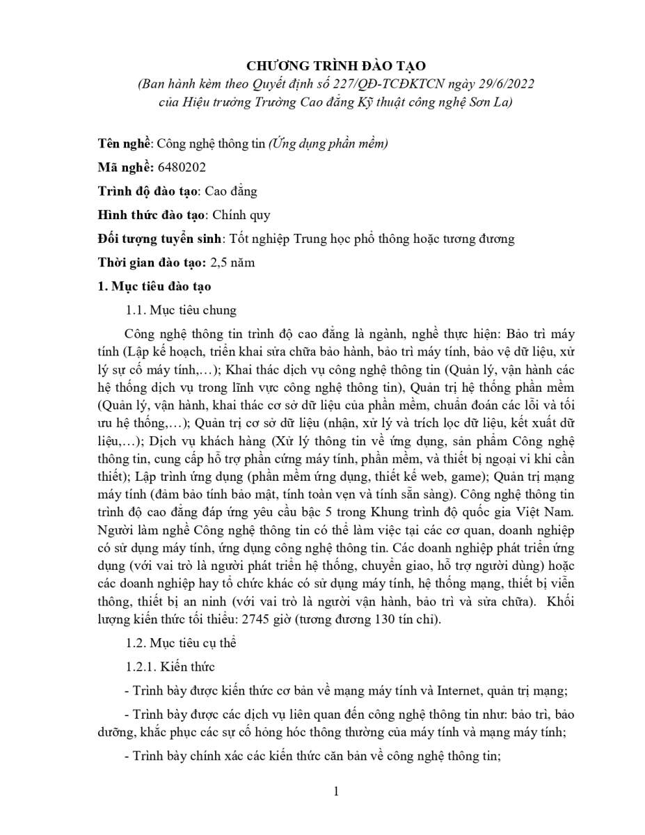 » Chương trình đào tạo nghề CNTT UDPM hệ TC (15.06.2022)