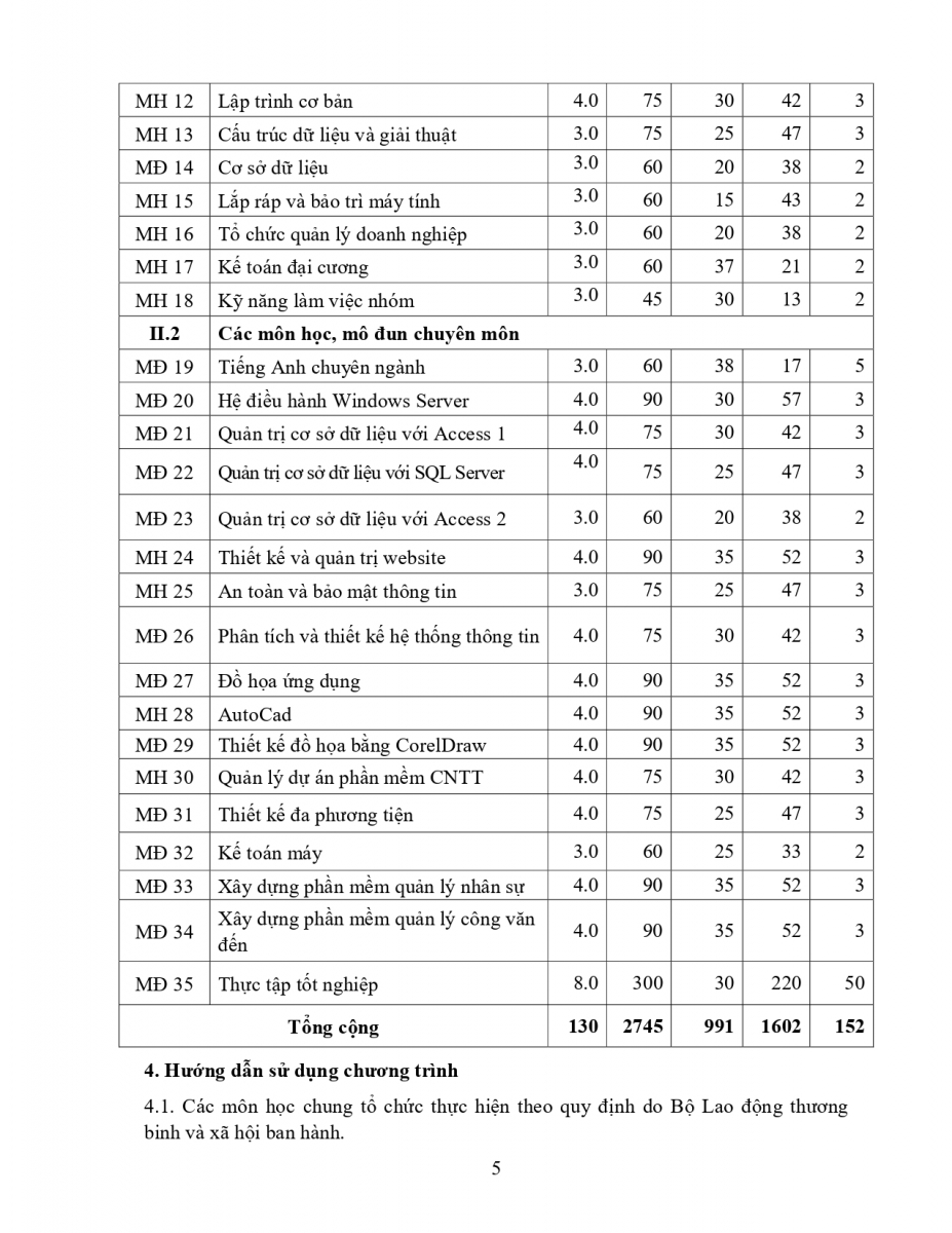 Chương trình đào tạo nghề CNTT UDPM hệ Cao đẳng