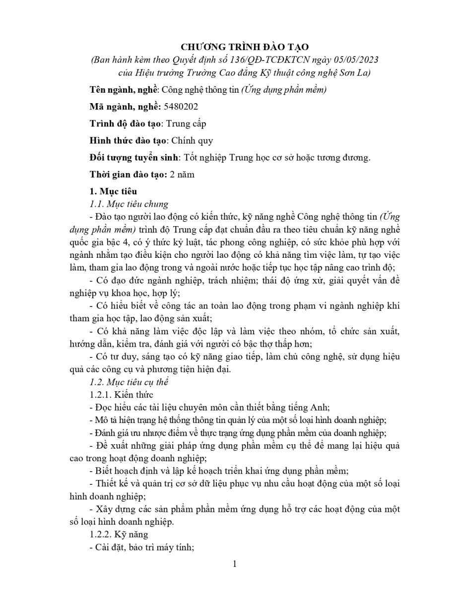 » Chương trình đào tạo nghề CNTT UDPM hệ TC (15.06.2022)