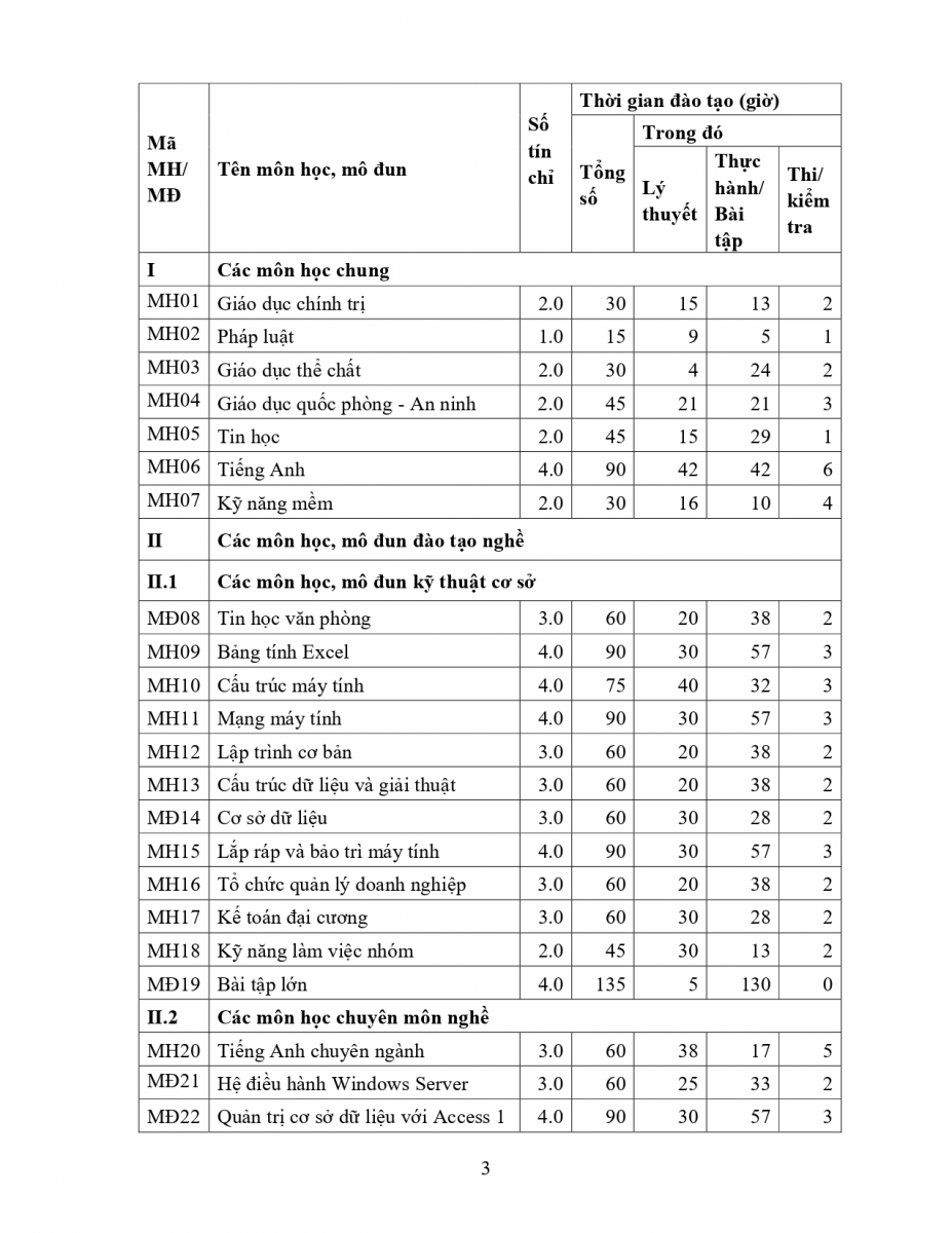 » Chương trình đào tạo nghề Quản trị mạng máy tính hệ TC (15.06.2022)