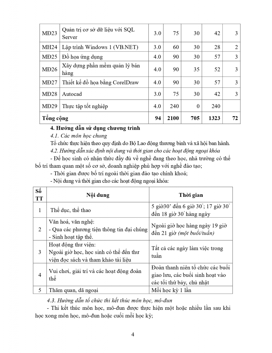 Chương trình đào tạo nghệ CNTT Ứng dụng phần mềm