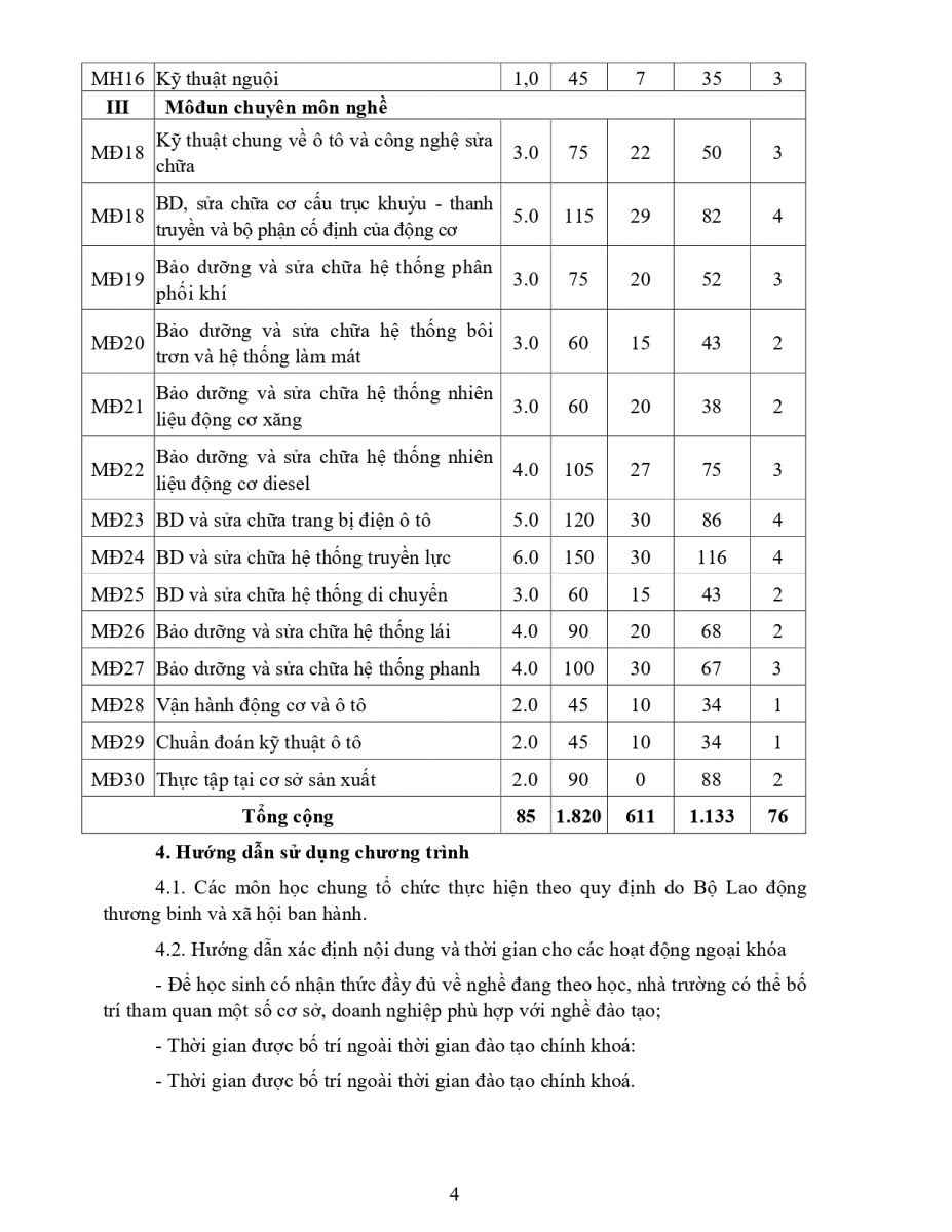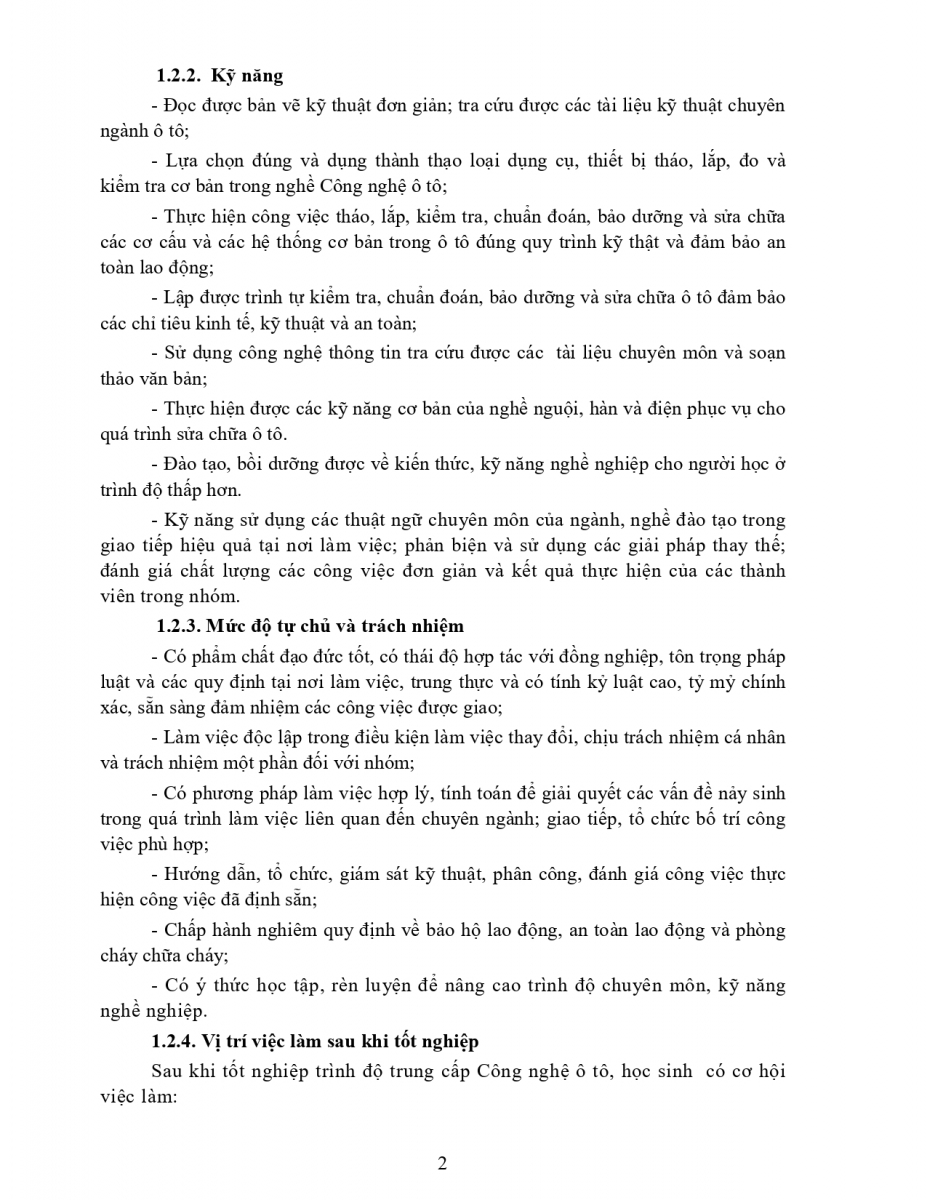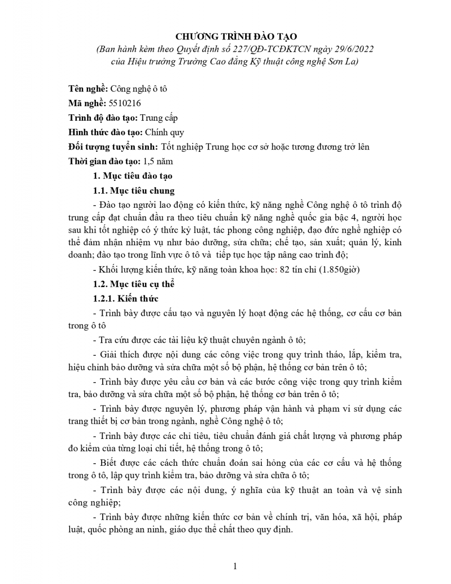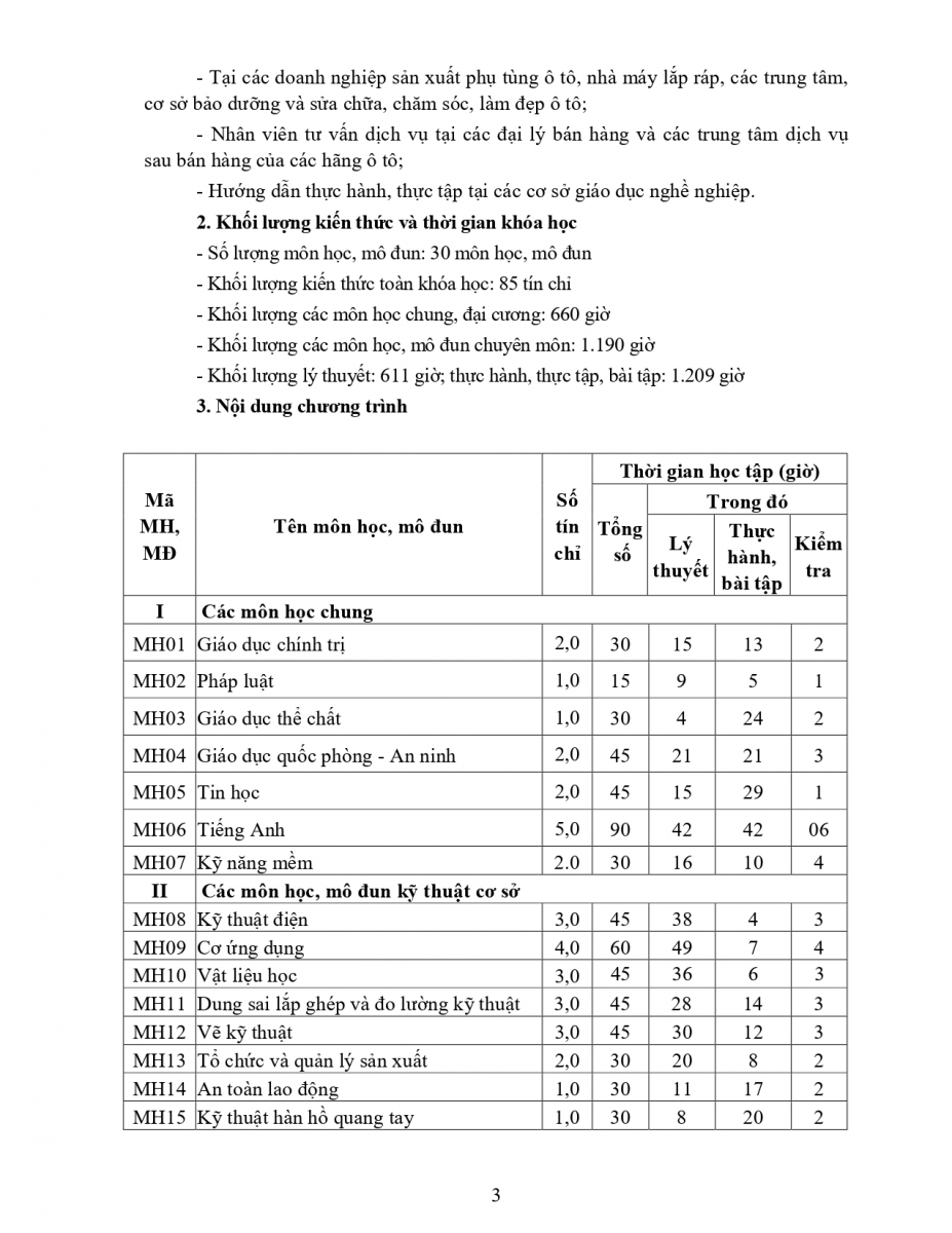 Chương trình đào tạo nghề Công nghệ ô tô TĐTC