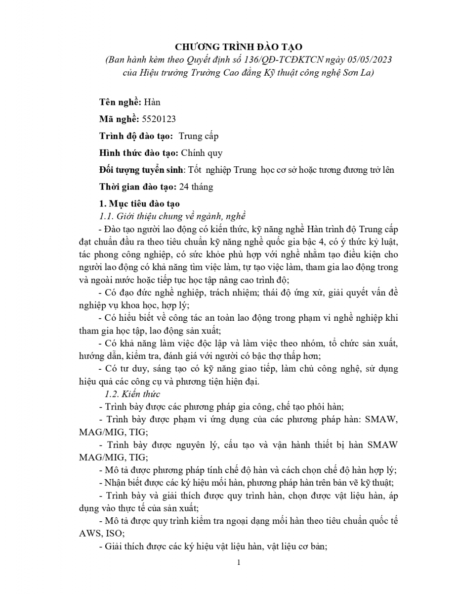 » chương trình đào tạo nghề Điện CN hệ cao đẳng (15.06.2022)