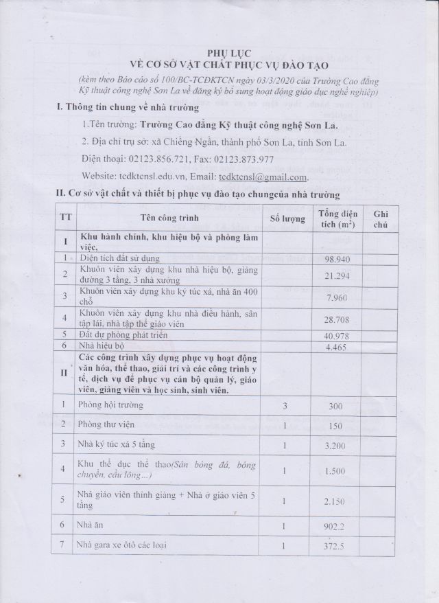Cơ sở vật chất phục vụ công tác đào tạo