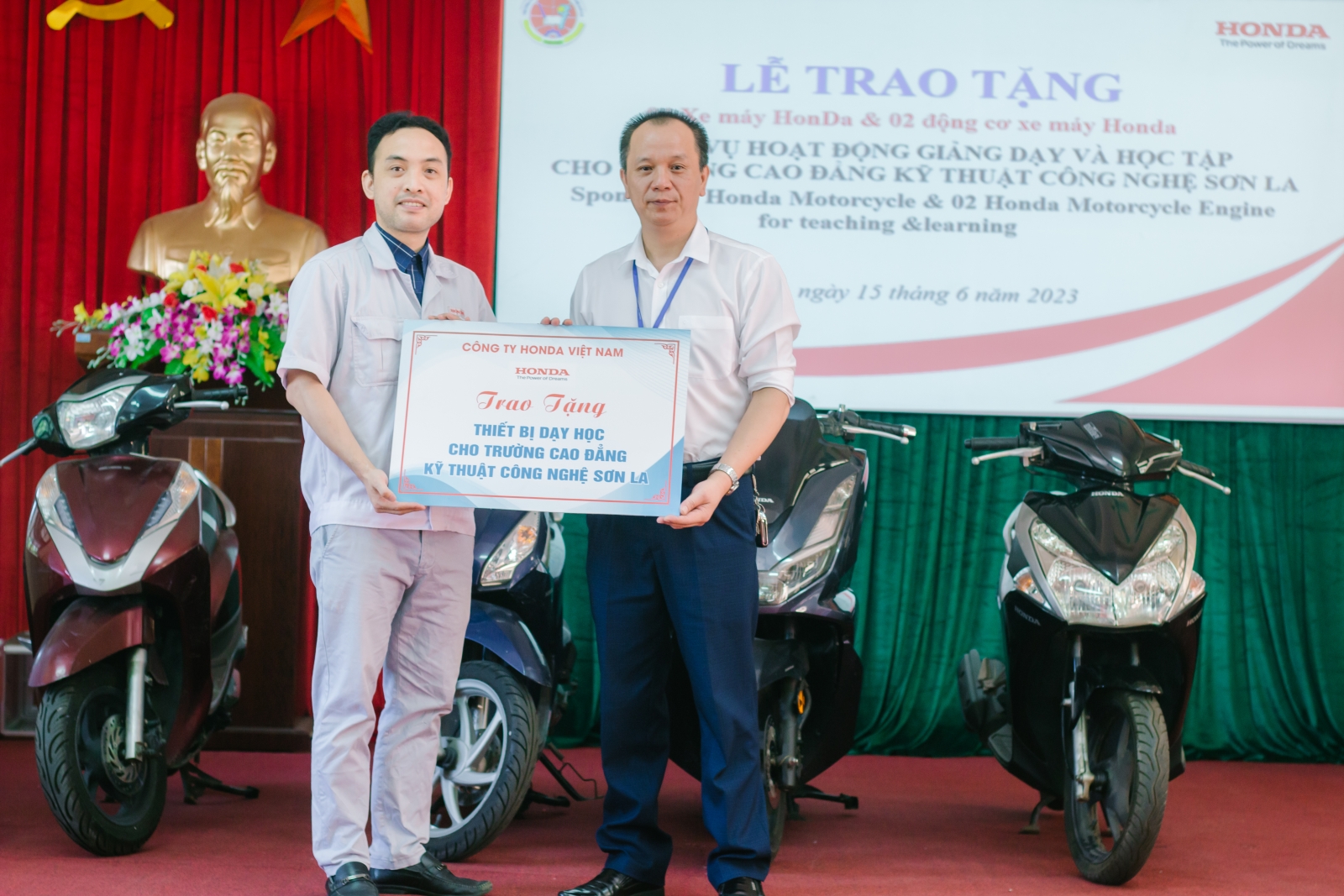 Sáng ngày 15 tháng 06 năm 2023, Công ty Honda Việt Nam tổ chức trao tặng thiết bị phục vụ hoạt động giảng dạy và học tập cho trường Cao đẳng Kỹ thuật công nghệ Sơn La. Dự lễ trao tặng, có ông Nguyễn Minh Đức Phó trưởng Phòng nhân sự phụ trách tuyển dụng Honda Việt Nam và đoàn công tác. Về phía Trường Cao đẳng Kỹ thuật công nghệ Sơn La có Thạc sỹ Nguyễn Văn Hùng, Hiệu trưởng; Ban Giám hiệu; lãnh đạo các phòng khoa và hơn 100 sinh viên của khoa Cơ khí động lực, vận hành ô tô máy thi công và khoa Điện - Điện tử.