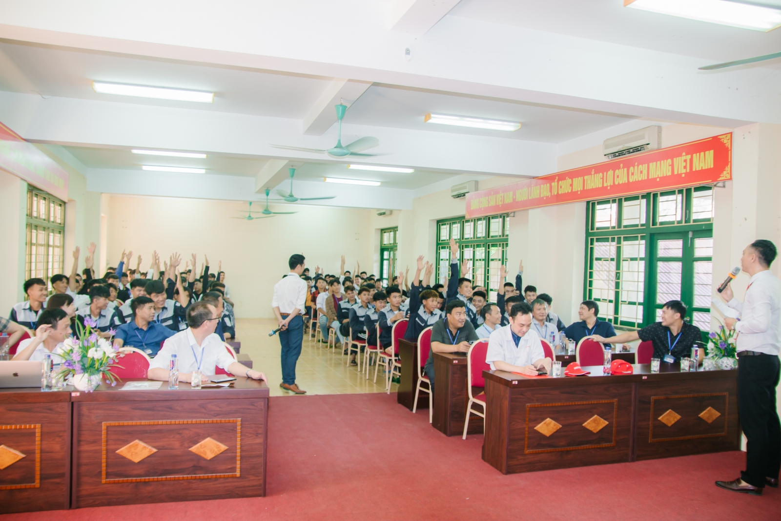 Thạc sỹ Nguyễn Văn Hùng, Hiệu trưởng thay mặt Ban Giám hiệu phát biểu cảm ơn Thay mặt Ban Giám hiệu nhà trường, Thạc sỹ Nguyễn Văn Hùng, Hiệu trưởng bày tỏ sự cảm ơn công ty Honda Việt Nam đã hỗ trợ Nhà trường một số thiết bị cần thiết nhằm phục vụ công tác đào tạo. Đồng thời mong muốn, đây là bước khởi đầu quan trọng để hai bên tiếp tục mở rộng hợp tác không chỉ trong đào tạo mà còn trong các hoạt động nghiên cứu, ứng dụng và chuyển giao công nghệ, gắn kết phục vụ cộng đồng, đặc biệt là công tác giải quyết việc làm cho HSSV sau đào tạo.