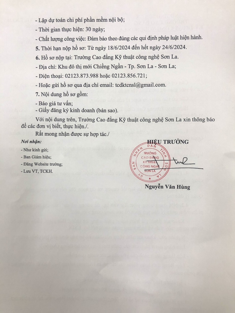 » Công văn mời báo giá thu mua phế liệu các loại của trường Cao đẳng Kỹ thuật công nghệ Sơn La (05.06.2025)