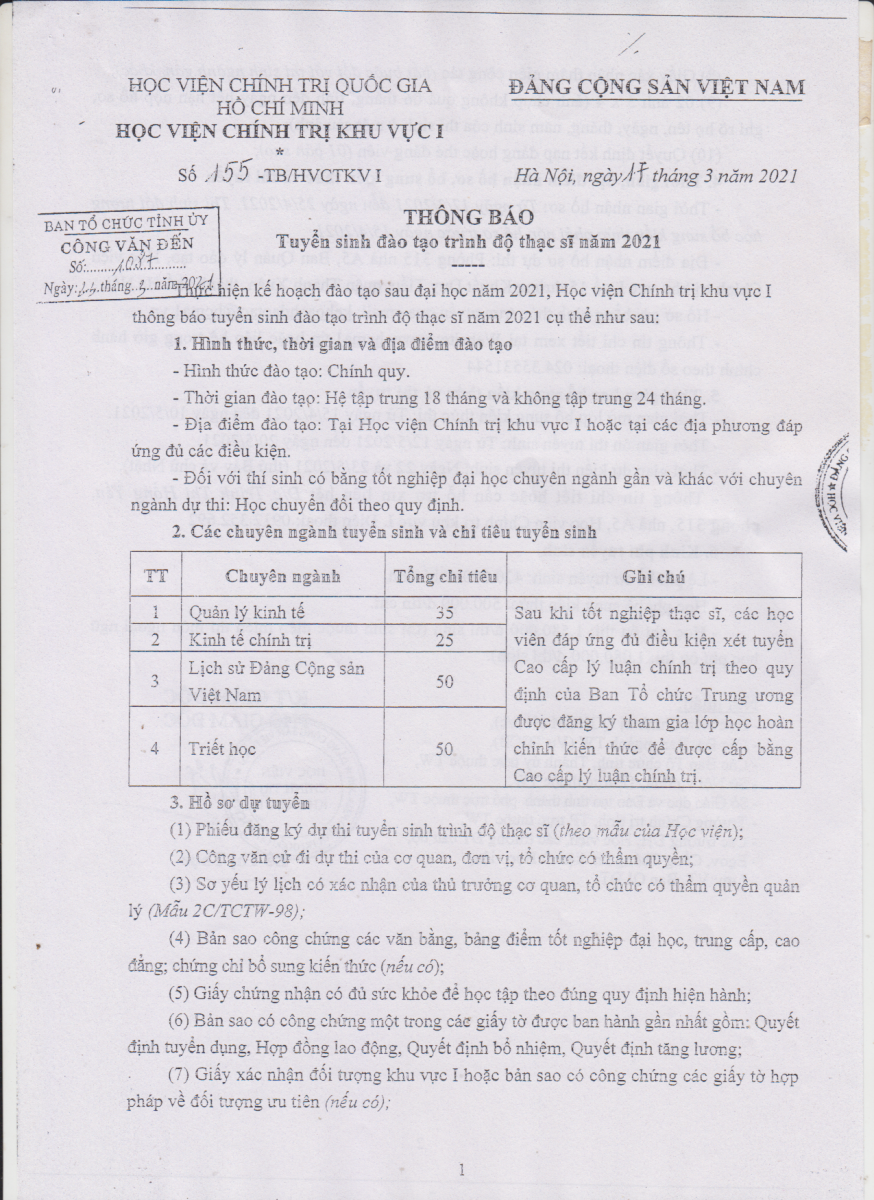 » CV số 209/TCĐKTCN-TCHC về việc đăng ký nhu cầu đào tạo tiến sỹ, thạch sỹ và đánh giá kỹ năng nghề quốc gia năm 2021 (14.04.2021)