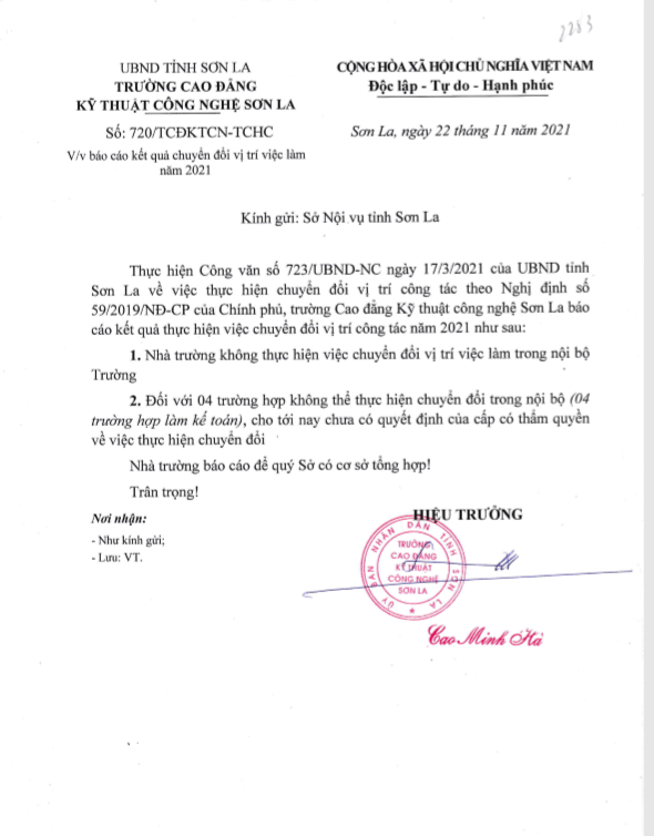 Công văn số 270 báo cáo kết quả chuyển đổi vị trí việc làm năm 2021