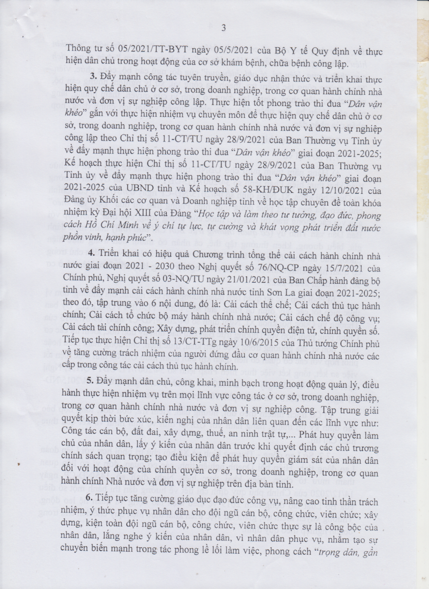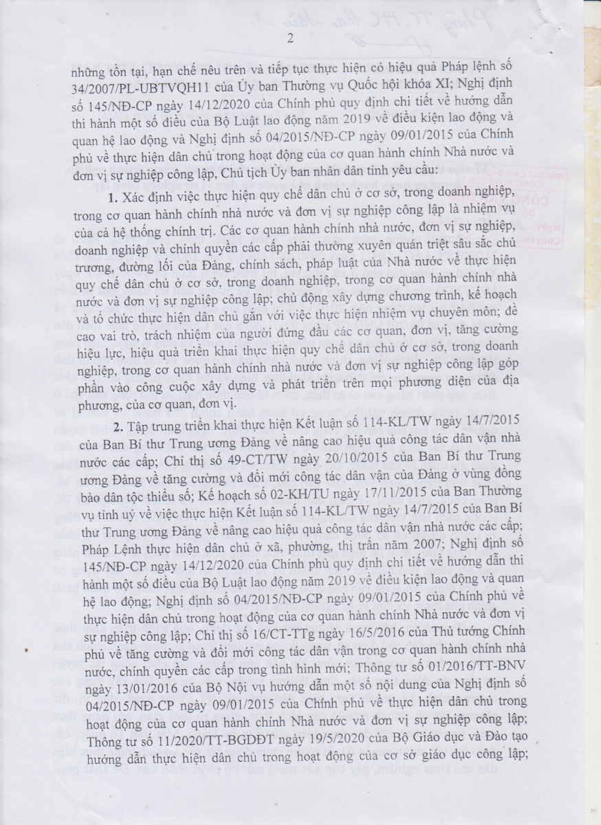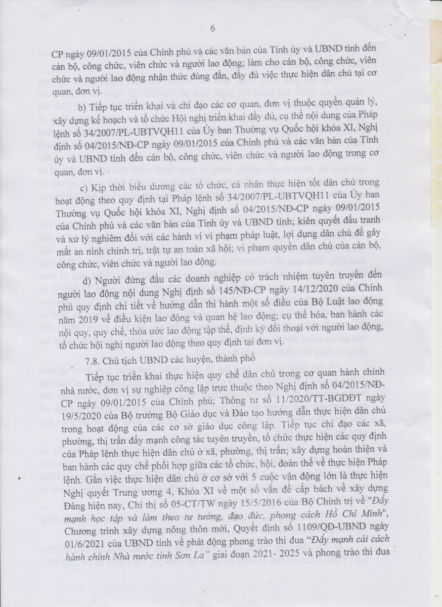 Công văn số 719/TCĐKTCN ngày 22/11/2021 về việc triển khai thực hiện Chỉ thị số 30 của Chủ tịch UBND tỉnh Sơn La về tăng cường thực hiện QUy chế dân chủ ơ cơ sở