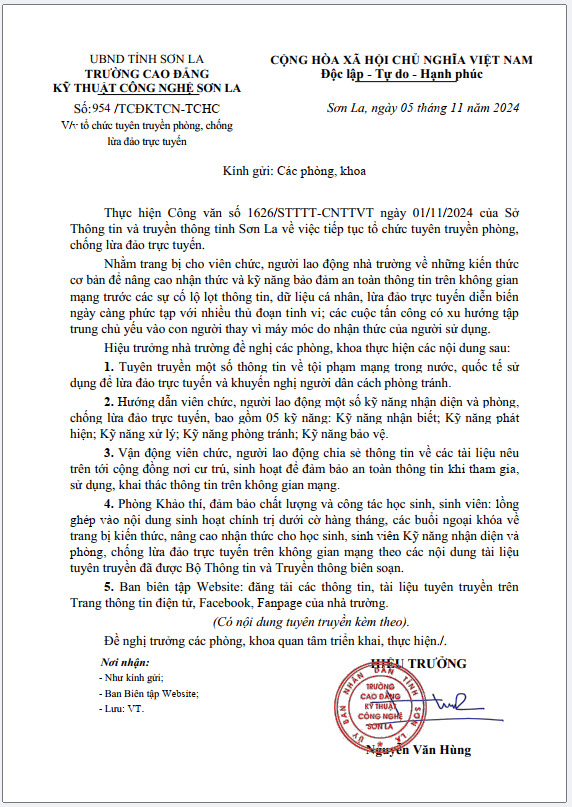 Công văn số 945 về việc tổ chức, tuyên truyền, phòng chống lừa đảo trực tuyến