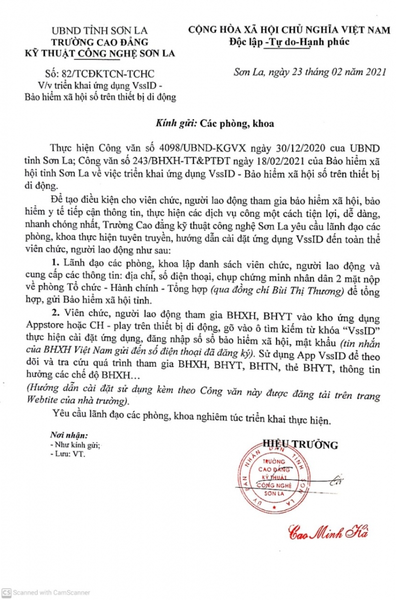 Công văn tiển khai ứng dựng VssID - Bảo hiểm xã hội số trên thiết bị di động