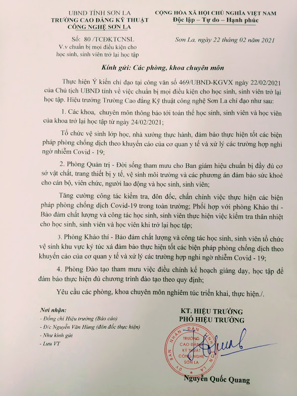 Công văn về việc chuẩn bị mọi điều kiện cho học sinh, sinh viên trở lại học tập