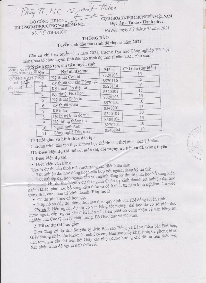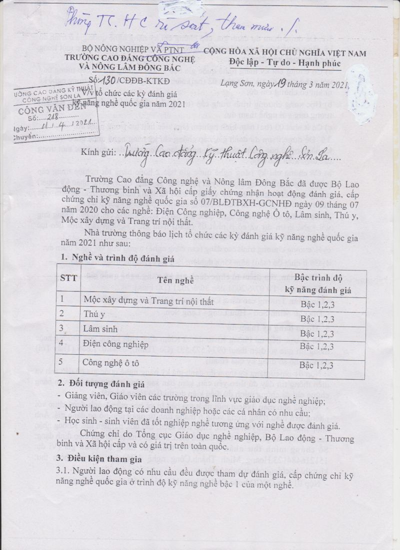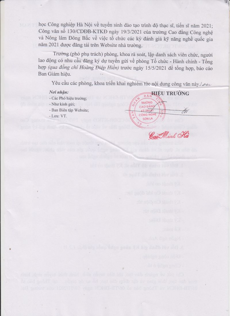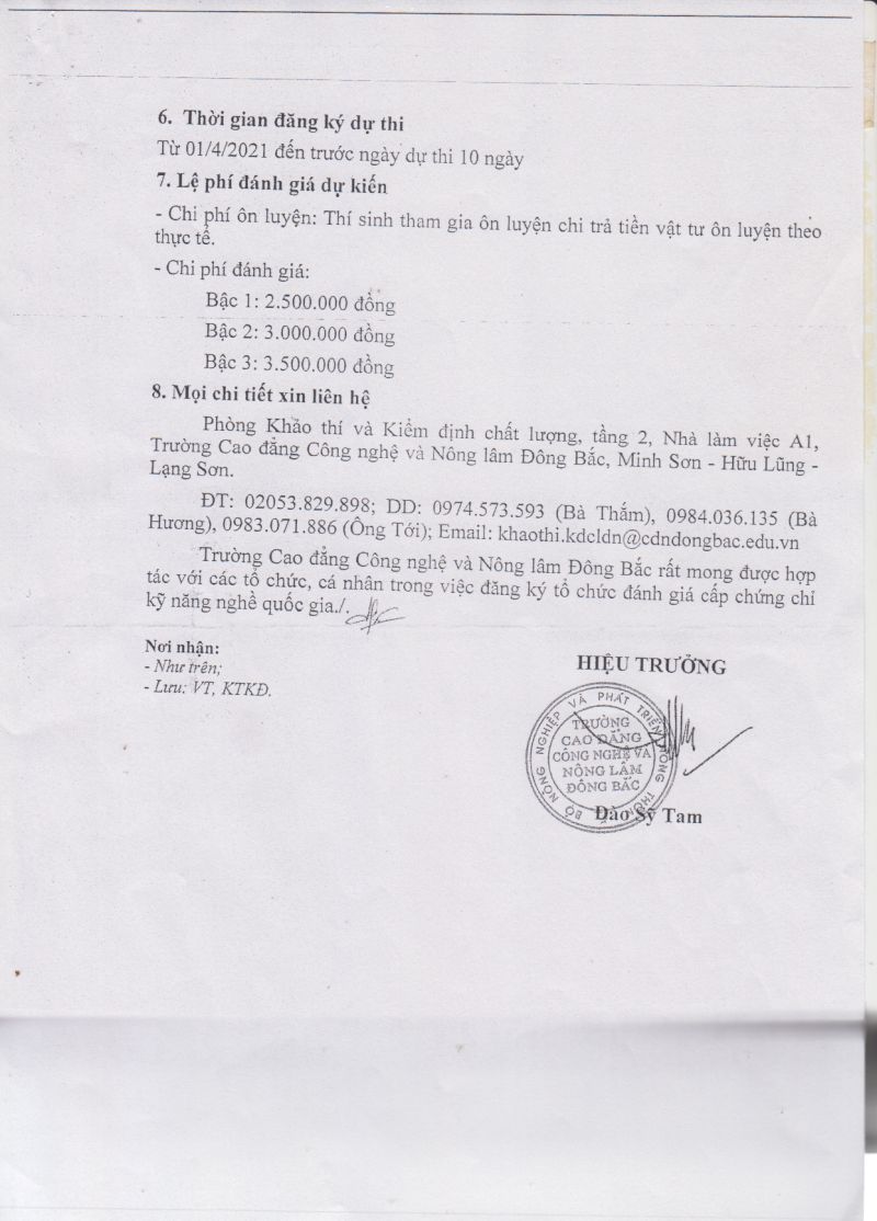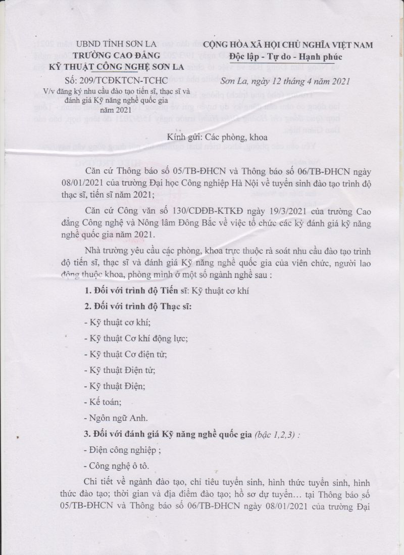 CV số 209/TCĐKTCN-TCHC về việc đăng ký nhu cầu đào tạo tiến sỹ, thạch sỹ và đánh giá kỹ năng nghề quốc gia năm 2021