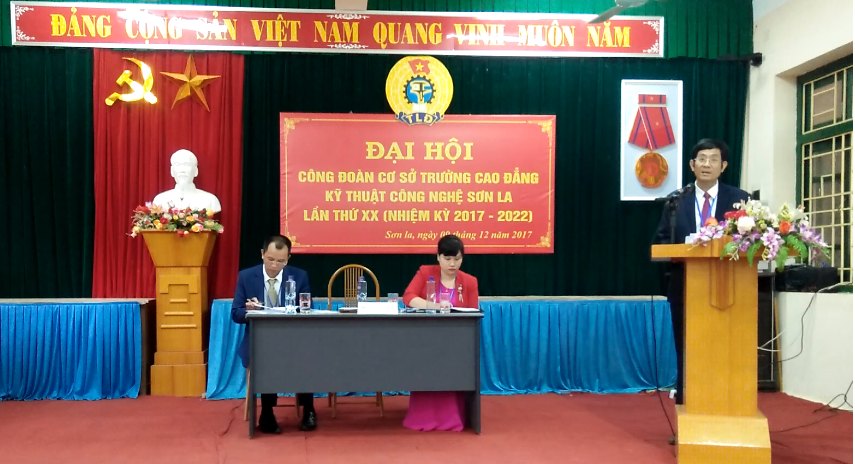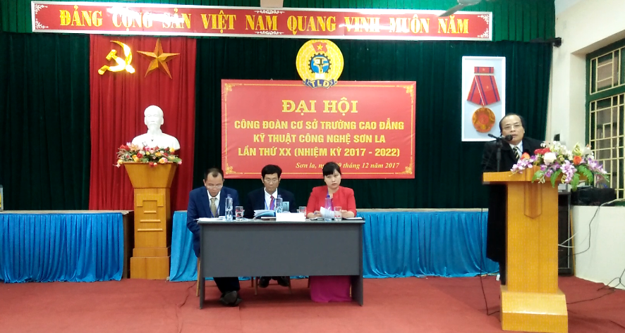 Ngày 09/12/2017, Công đoàn cơ sở trường Cao đẳng Kỹ thuật công nghệ Sơn La long trọng tổ chức Đại hội Công đoàn cơ sở lần XX nhiệm kỳ 2017 - 2022. Dự Đại hội có đồng chí Giang Kim Phượng – UVBTV Liên đoàn Lao động tỉnh, Chủ tịch Công đoàn Viên chức tỉnh Sơn La; đồng chí Cao Minh Hà – Bí thư Đảng ủy, Hiệu trưởng Nhà trường; các đồng chí trong Ban Chấp hành Đảng bộ, Ban Giám hiệu cùng toàn thể đoàn viên công đoàn trong toàn trường.