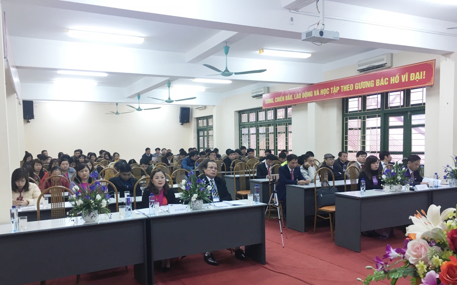 Đ/c Đinh Thị Mơ tham luận về nội dung Công đoàn với công tác bảo vệ quyền, lợi ích hợp pháp cho người lao động. Tại Đại hội, Đoàn viên công đoàn đã nhất trí cao với đề án nhân sự Ban chấp hành Công đoàn cơ sở nhiệm kỳ 2017 – 2022. Đại hội đã bầu ra được Ban chấp hành công đoàn cơ sở lần thứ XX nhiệm kỳ 2017 – 2022 gồm 07 đồng chí: 1. Đ/c Nguyễn Văn Hùng - Chủ tịch 2. Đ/c Bùi Xuân Tiến – Phó Chủ tịch 3. Đ/c Nguyễn Hồng Quân - Ủy viên 4. Đ/c Lã Thiện Hào - Ủy viên 5. Đ/c Phạm Đức Bài - Ủy viên 6. Đ/c Bùi Thị Thương - Ủy viên 7. Đ/c Hồ Thị Thanh Trúc - Ủy viên Đ/c Cao Minh Hà tặng hoa và chúc mừng các đồng chí BCH Công đoàn Nhà trường nhiệm kỳ 2017 –2022.