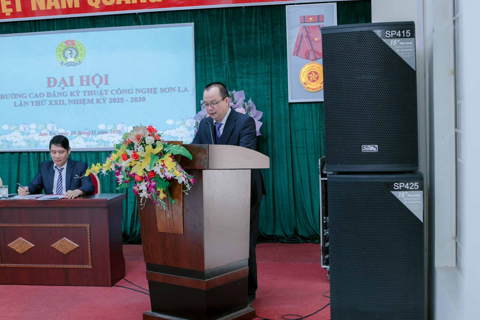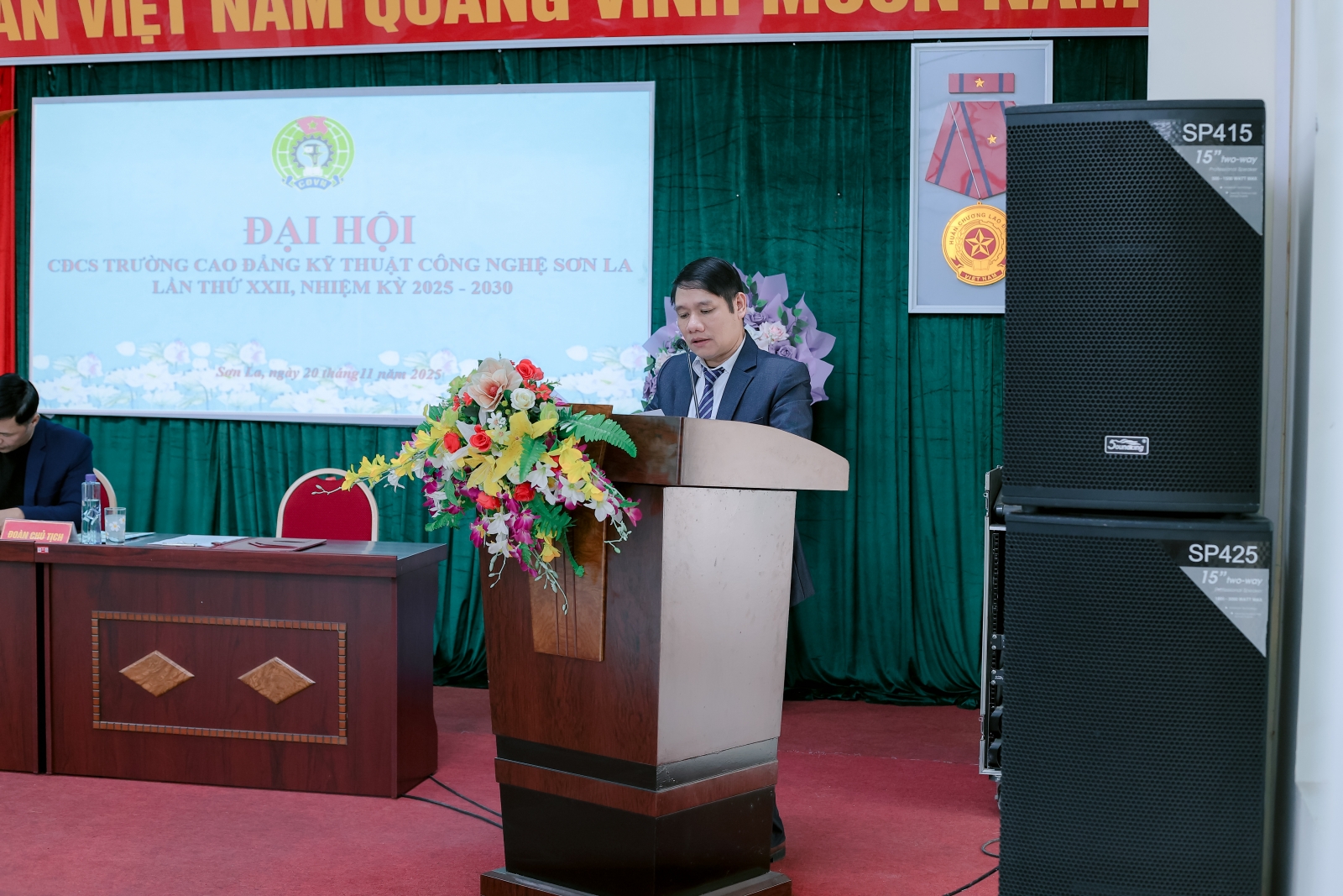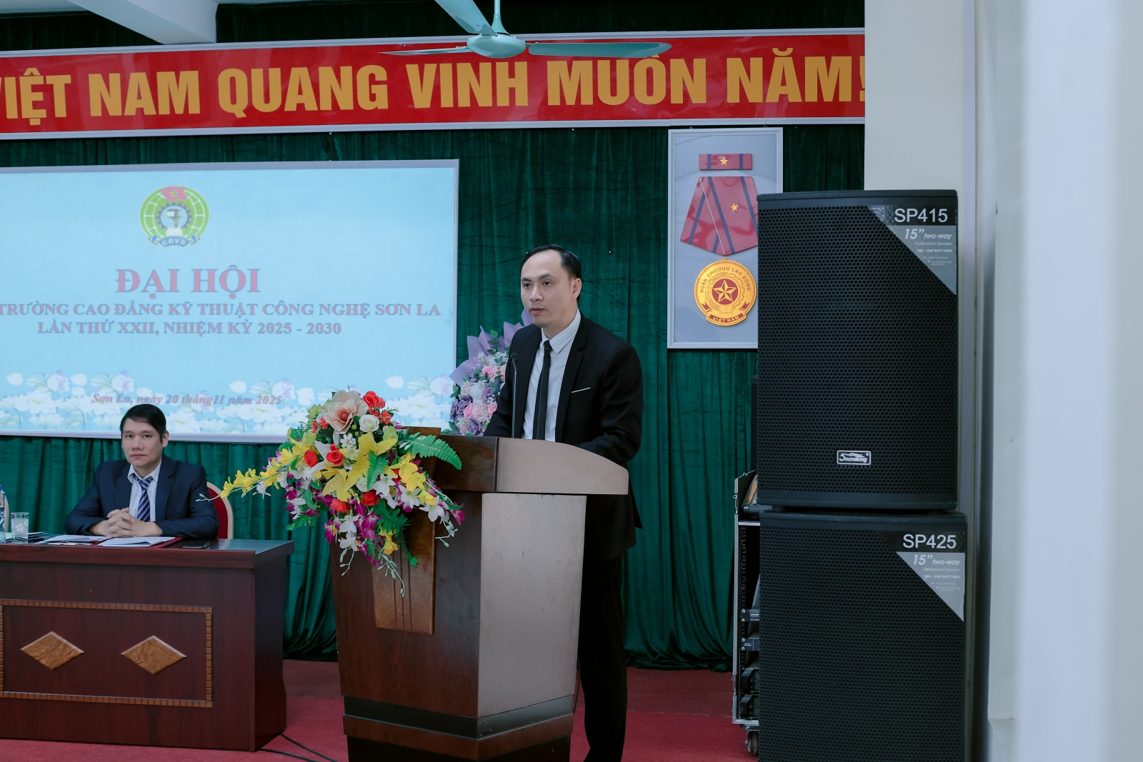 Ngày 20/11/2025, Công đoàn cơ sở trường Cao đẳng Kỹ thuật công nghệ Sơn La long trọng tổ chức Đại hội Công đoàn cơ sở lần XXII nhiệm kỳ 2025 – 2030 Đại hội Công đoàn cơ sở trường Cao đẳng Kỹ thuật công nghệ Sơn La nhiệm kỳ 2025-2030 nhằm tổng kết đánh giá phong trào công chức, viên chức, người lao động và hoạt động công đoàn nhiệm kỳ 2023-2025, đề ra phương hướng nhiệm vụ công đoàn trong nhiệm kỳ 2025-2030 và bầu ra Ban Chấp hành công đoàn khóa mới để lãnh đạo thực hiện nhiệm vụ công đoàn nhiệm kỳ 2025 -2030. Dự Đại hội có đồng chí Nguyễn Văn Hùng – Bí thư Đảng ủy, Hiệu trưởng Nhà trường; các đồng chí trong Ban Chấp hành Đảng bộ, Ban Giám hiệu cùng toàn thể đoàn viên công đoàn trong toàn trường.