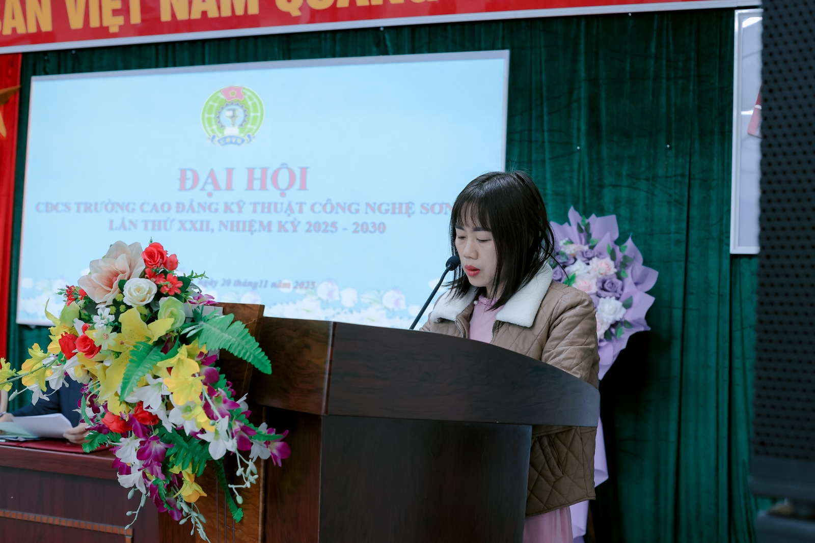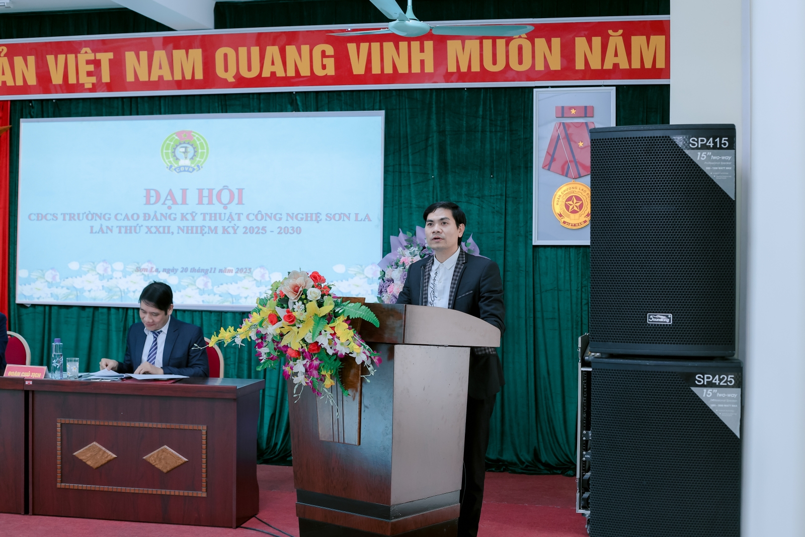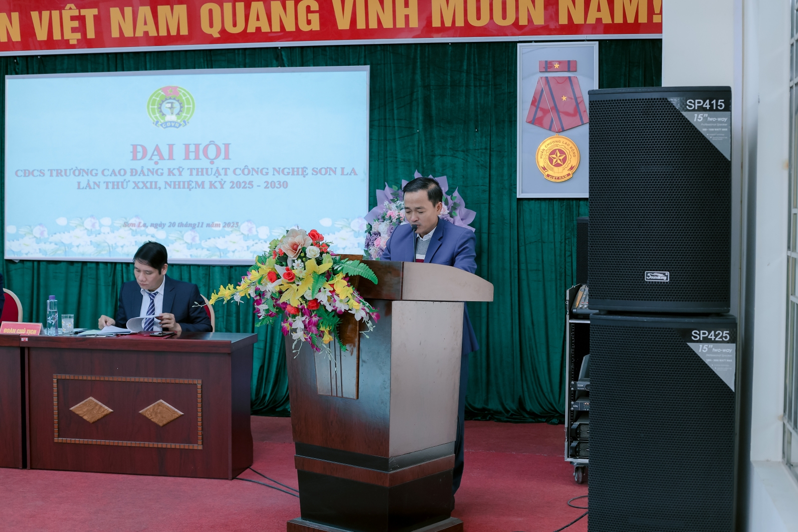 Ngày 20/11/2025, Công đoàn cơ sở trường Cao đẳng Kỹ thuật công nghệ Sơn La long trọng tổ chức Đại hội Công đoàn cơ sở lần XXII nhiệm kỳ 2025 – 2030 Đại hội Công đoàn cơ sở trường Cao đẳng Kỹ thuật công nghệ Sơn La nhiệm kỳ 2025-2030 nhằm tổng kết đánh giá phong trào công chức, viên chức, người lao động và hoạt động công đoàn nhiệm kỳ 2023-2025, đề ra phương hướng nhiệm vụ công đoàn trong nhiệm kỳ 2025-2030 và bầu ra Ban Chấp hành công đoàn khóa mới để lãnh đạo thực hiện nhiệm vụ công đoàn nhiệm kỳ 2025 -2030. Dự Đại hội có đồng chí Nguyễn Văn Hùng – Bí thư Đảng ủy, Hiệu trưởng Nhà trường; các đồng chí trong Ban Chấp hành Đảng bộ, Ban Giám hiệu cùng toàn thể đoàn viên công đoàn trong toàn trường.