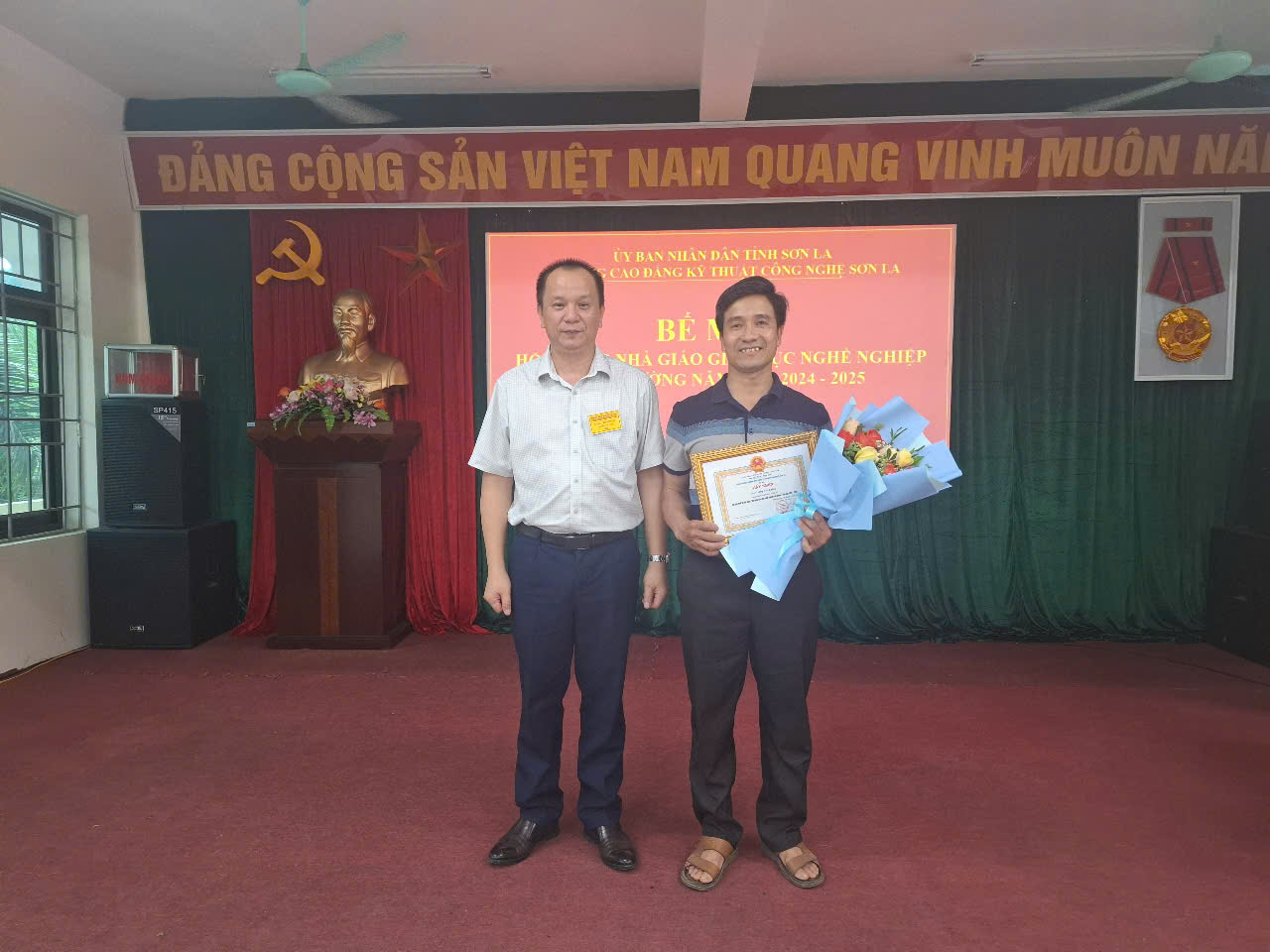 Thầy Trình Văn Xuân với bài giảng Kỹ thuật hàn 2F (lớp 2) Sau mỗi giờ trình giảng của Giảng viên, Giáo viên tham gia hội thi, Ban giám khảo đã tiến hành đánh giá và chấm điểm theo các tiêu chí đã ban hành. Kết quả 13/13 Giảng viên, giáo viên được công nhận danh hiệu “Nhà giáo giáo dục nghề nghiệp giỏi” năm học 2024 - 2025. trong đó có 01 giải nhất, 01 giải nhì, 02 giải ba và 02 giải khuyến khích.