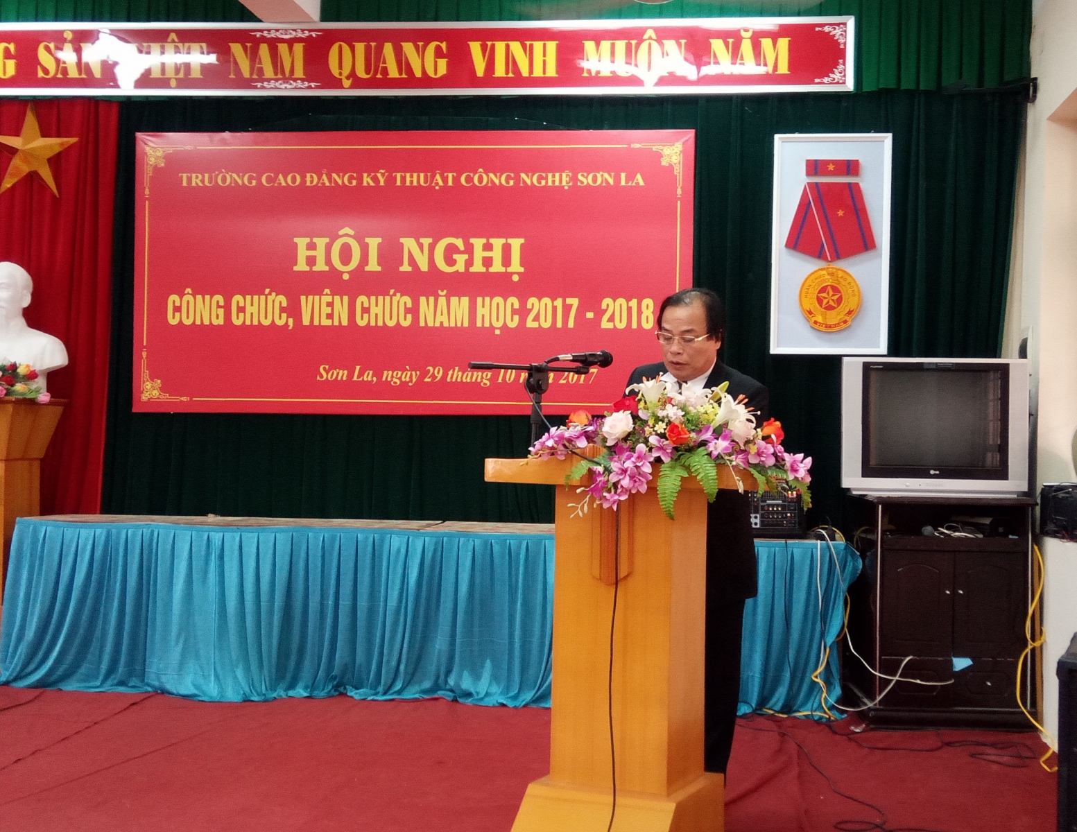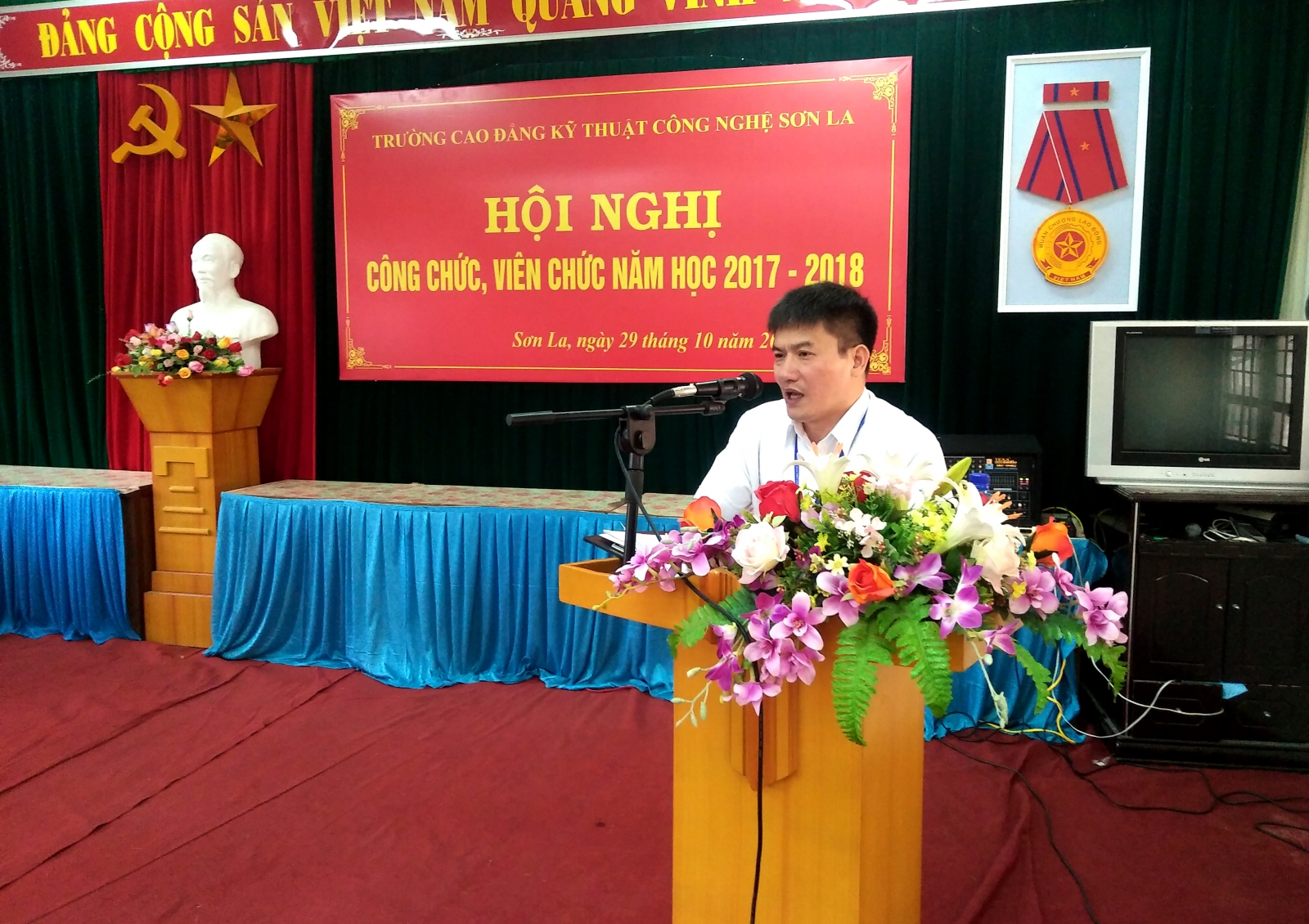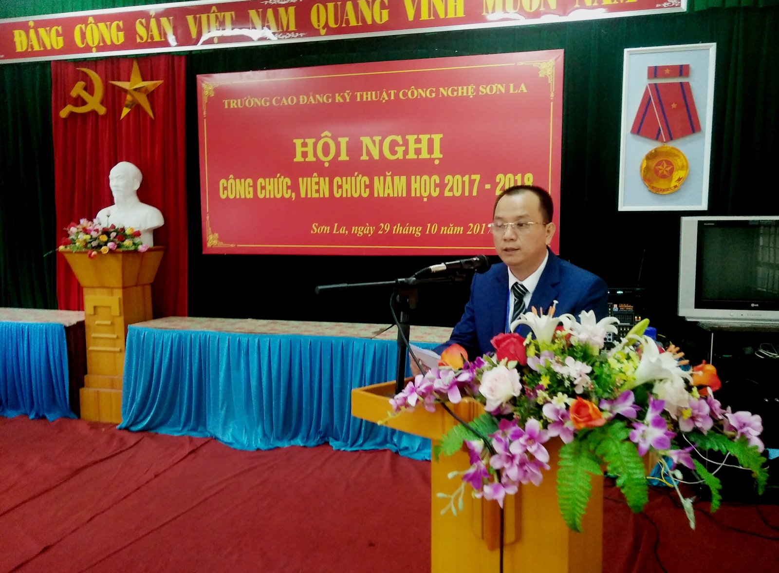 Sáng 29/10/2017, Trường Cao đẳng Kỹ thuật công nghệ Sơn La đã long trọng tổ chức Hội nghị Công chức, Viên chức năm học 2017 - 2018. Hội nghị nhằm tổng kết tình hình thực hiện Nghị quyết Hội nghị công chức, viên chức năm học 2016 - 2017 và đề ra phương hướng nhiệm vụ năm học 2017 – 2018. Chủ trì Hội nghị Đ/c Cao Minh Hà – Bí thư Đảng ủy, Hiệu trường; Tham dự hội nghị có các đồng chí trong Ban chấp hành đảng bộ; Ban Giám hiệu cùng toàn thể các đồng chí cán bộ, viên chức và nhân viên trong toàn trường.
