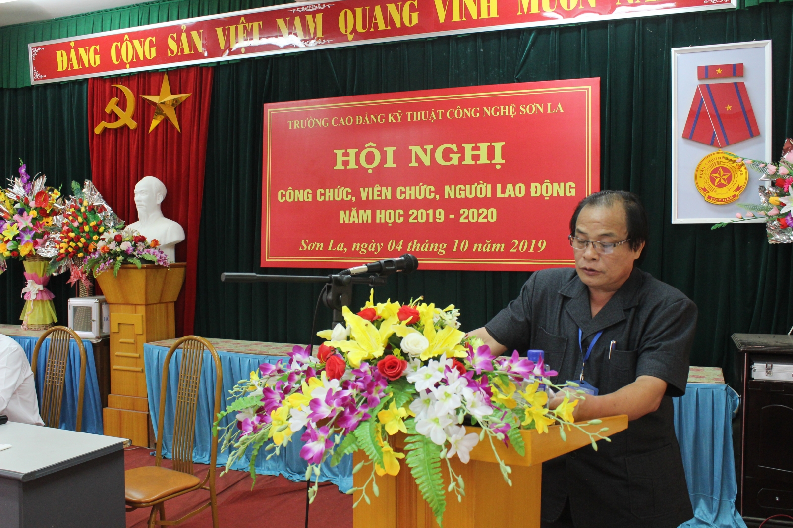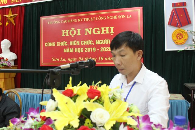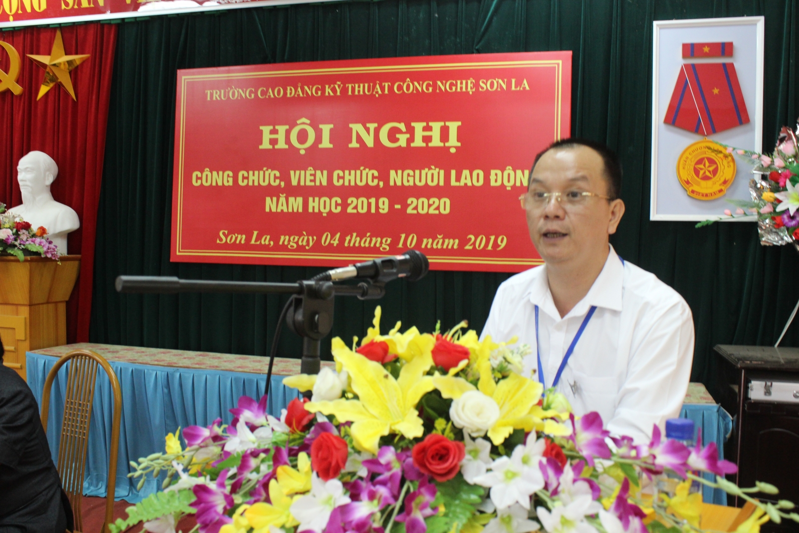 Chiều ngày 04/10/2019 Trường Cao đẳng Kỹ thuật công nghệ Sơn La đã tổ chức Hội nghị công chưc, viên chức, người lao động năm học 2019 - 2020 nhằm đánh giá những kết quả thực hiện nhiệm vụ năm học 2018 - 2019 và đề ra phương hướng, nhiệm vụ trong năm học 2019 - 2020. Hội nghị cán bộ, viên chức năm học 2019 - 2020 có sự tham dự của các đồng chí trong Ban Giám hiệu, Ban Chấp hành Đảng bộ, Chủ tịch Công đoàn, Bí thư Đoàn Thanh niên, Ban Thanh tra Nhân dân cùng toàn thể công chức, viên chức, người lao động của nhà trường.