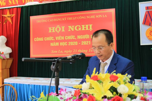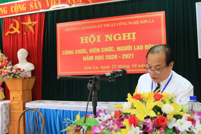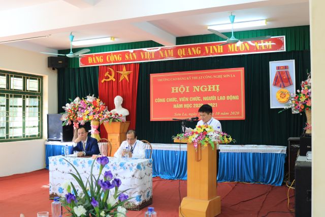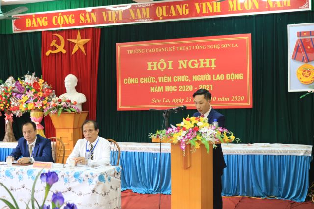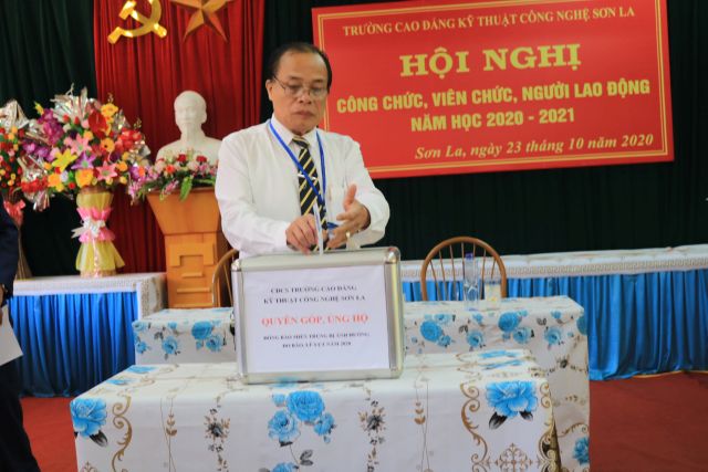 Chiều ngày 23/10/2020 Trường Cao đẳng Kỹ thuật công nghệ Sơn La đã tổ chức Hội nghị công chức, viên chức, người lao động năm học 2020 - 2021 nhằm đánh giá những kết quả thực hiện nhiệm vụ năm học 2019 - 2020 và đề ra phương hướng, nhiệm vụ trong năm học 2020 - 2021. Tham dự Hội nghị có các đồng chí trong Ban Chấp hành Đảng bộ, Ban Giám hiệu, Chủ tịch Công đoàn, Bí thư Đoàn Thanh niên, Ban Thanh tra Nhân dân cùng toàn thể công chức, viên chức, người lao động của nhà trường Trước khi tổ chức hội nghị đồng chí Nguyễn Văn Hùng - Chủ tịch BCH Công đoàn trường đã phát động, kêu gọi toàn thể Công chức, viên chức, người lao động trong toàng trường quyên góp 01 ngày lương để ủng hộ đồng bào các tỉnh miền Trung đang hứng chịu nỗi đau, mất mát do thiên tai tàn phá nghiêm trọng. Tổng số tiền quyên góp là 23.265.000đ (Hai ba triệu hai tăm sáu năm nghìn đồng)