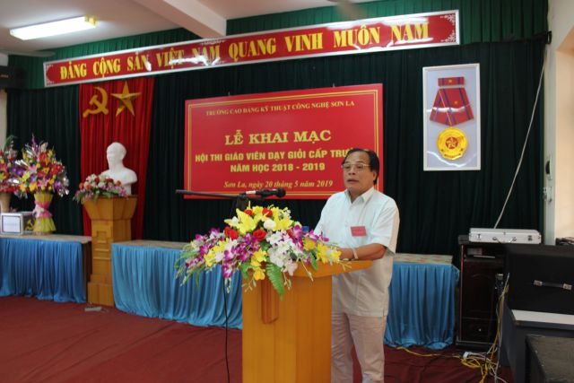 Sáng ngày 20/5/2019 Trường Cao đẳng kỹ thuật công nghệ Sơn La đã tổ chức khai mạc Hội thi giáo viên dạy giỏi cấp trường năm học 2018 - 2019. Đây là một trong những hoạt động chuyên môn thường niên của nhà trường, tham dự buổi khai mạc có đồng chí Cao Minh Hà, bí thư đảng ủy - Hiệu trưởng nhà trường; các đồng chí phó hiệu trưởng; trưởng, phó các các phòng, khoa, các giảng viên, giáo viên trong trường và đặc biệt là sự có mặt của 12 giảng viên, giáo viên tham gia hội thi giáo viên dạy giỏi năm nay cũng có mặt đông đủ.