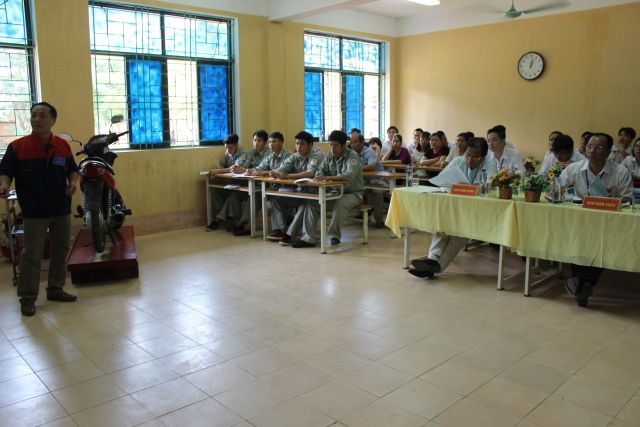 Đồng chí Nguyễn Quốc Quang - Phó hiệu trưởng trao giải khuyến khích cho cô giáo Hồ Thị Thanh Trúc Một số hình ảnh tại hội thi. Thầy Lã Thiện Hào với tiết giảng thực hành bài- Bảo Dưỡng bộ chế hòa khí xe Wave