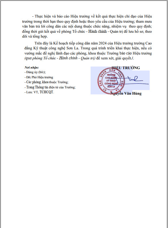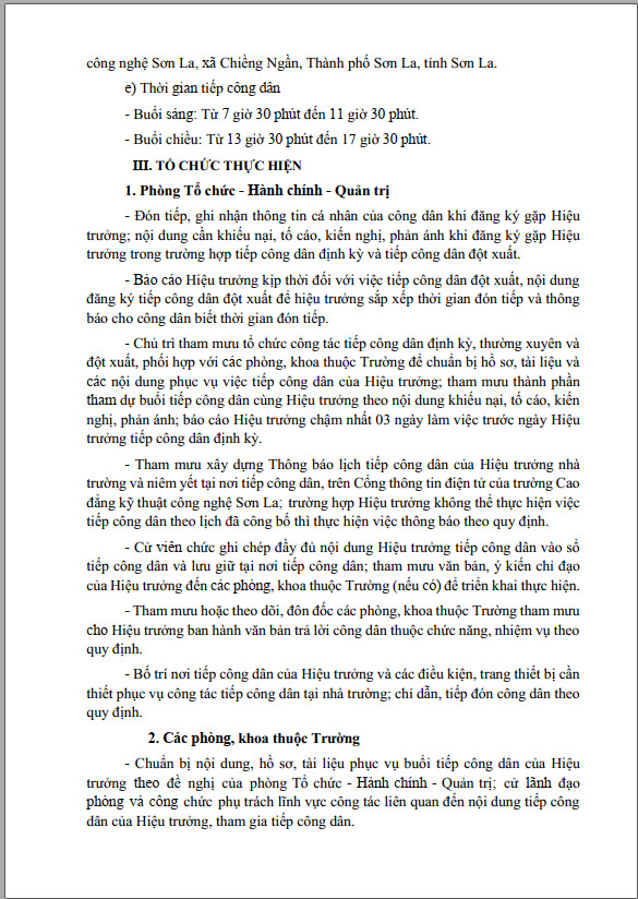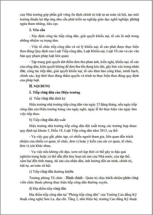 Kế hoạch 1131 tiếp công dân năm 2024 của Hiệu trưởng trường Cao đẳng Kỹ thuật công nghệ Sơn La