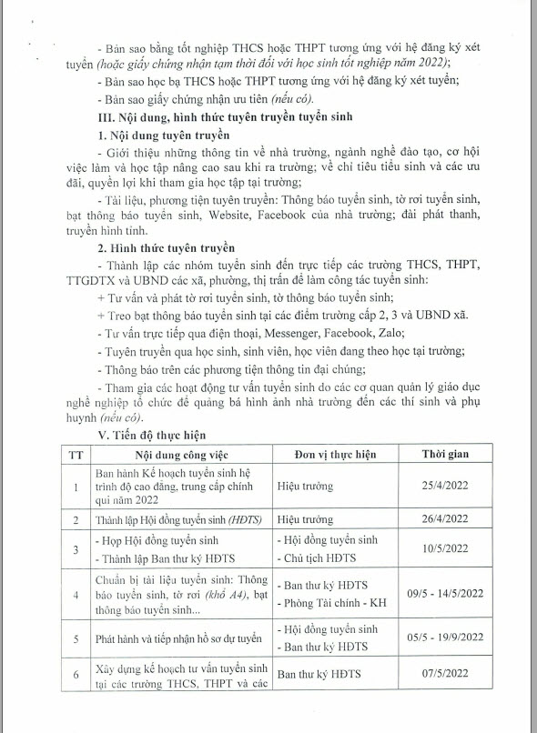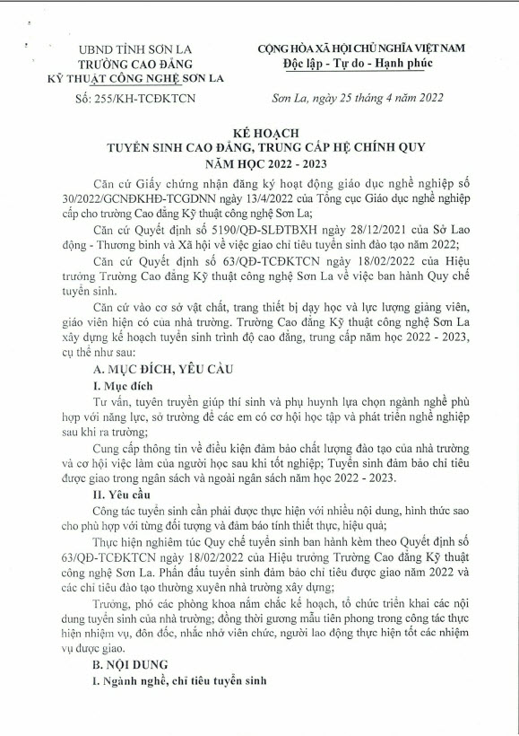 Kế hoạch 255 tuyển sinh cao đẳng, trung cấp hệ chính quy năm học 2022 - 2023