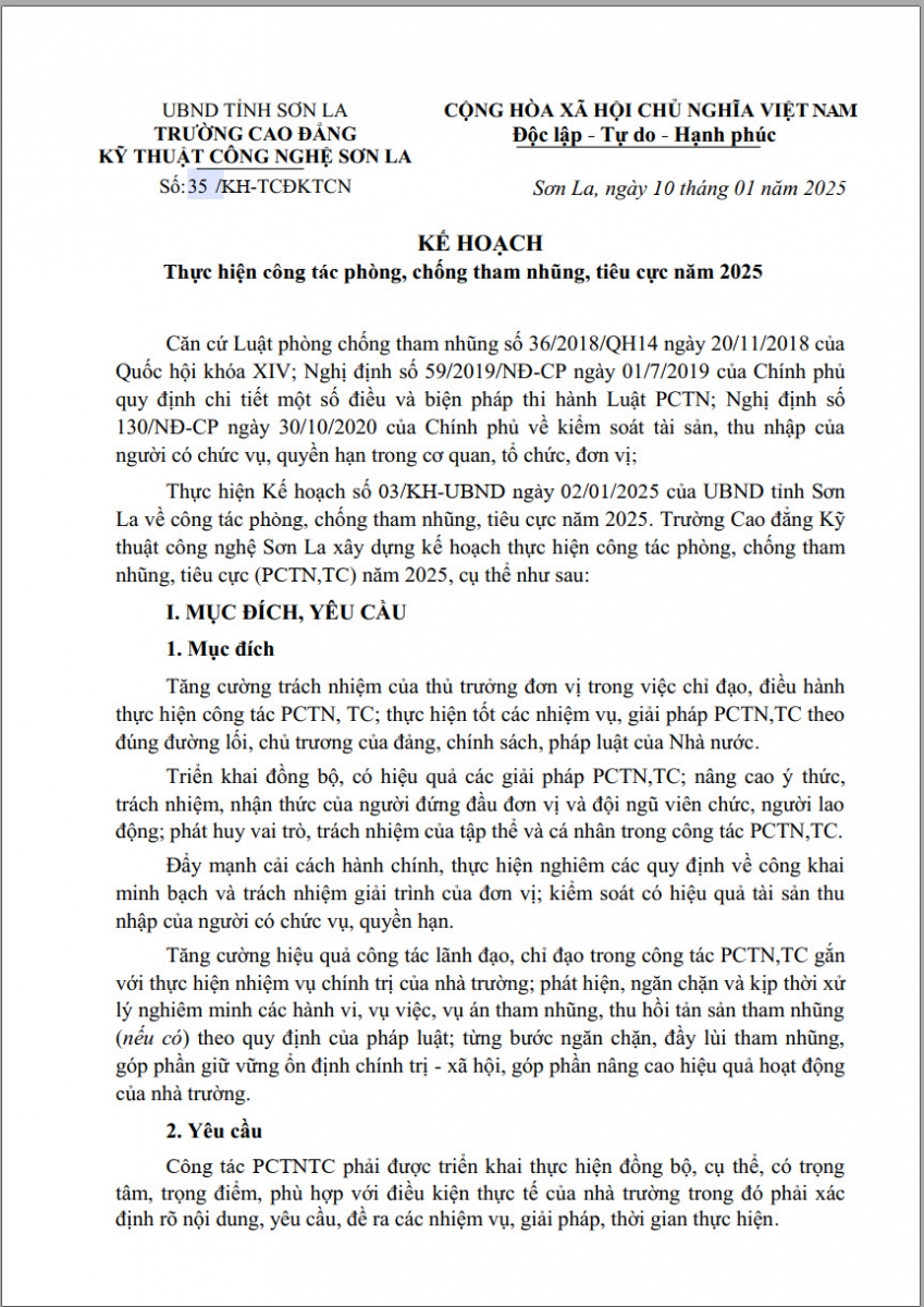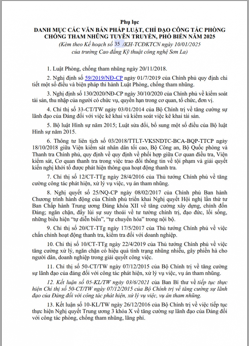 KẾ HOẠCH 35 THỰC HIỆN PHÒNG CHỐNG THAM NHŨNG, TIÊU CỰC NĂM 2025