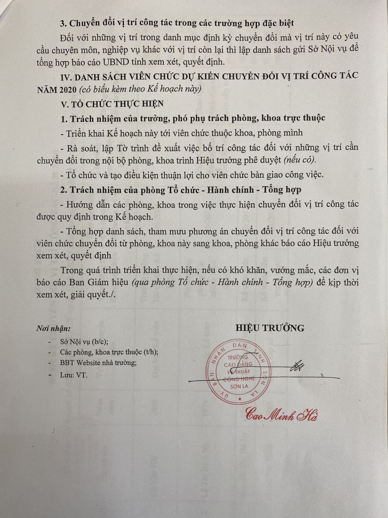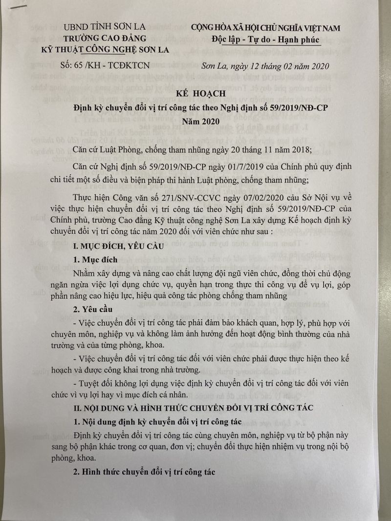 Kế hoạch định kỳ chuyển đổi vị trí công tác theo nghị định số 59/2019/NĐ-CP năm 2020
