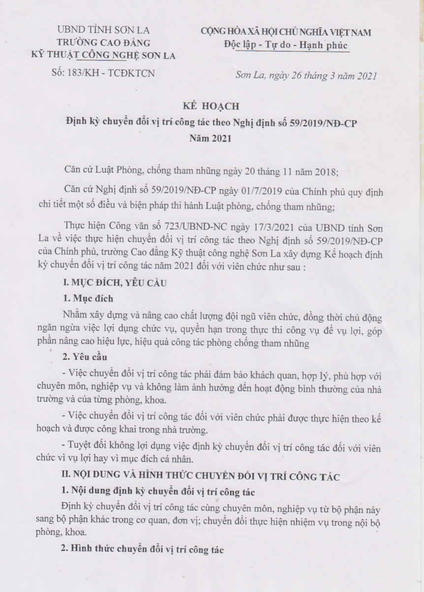 » Kế hoạch định kỳ chuyển đổi vị trí công tác theo nghị định 59/2019/NĐ-CP năm 2021 (02.04.2021)