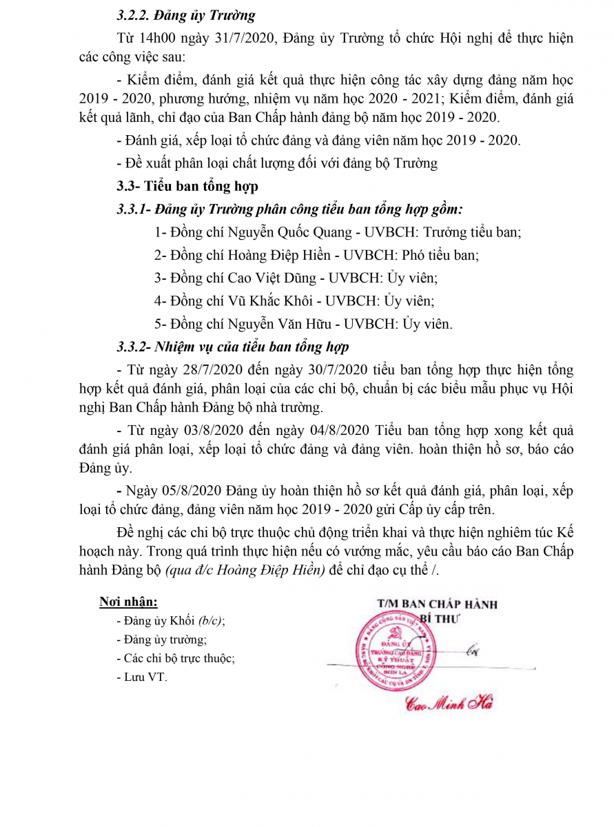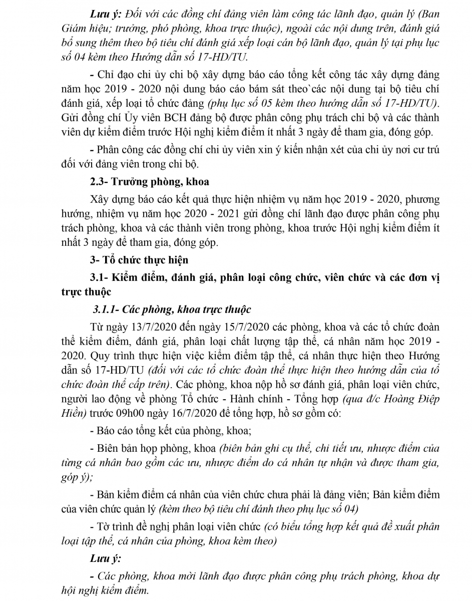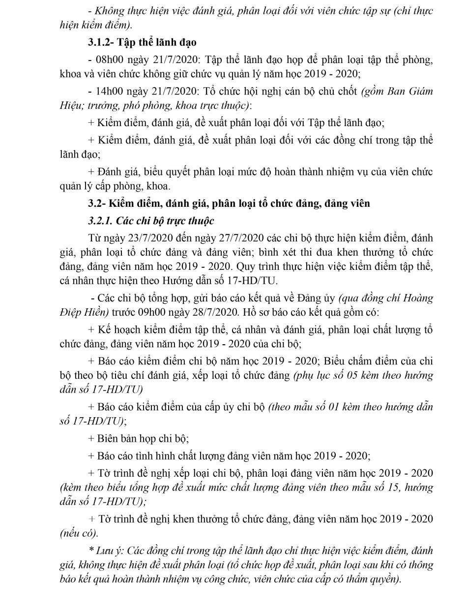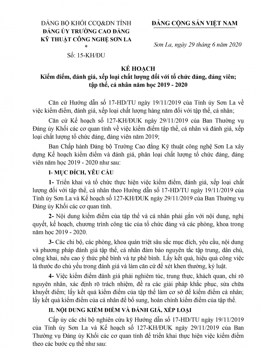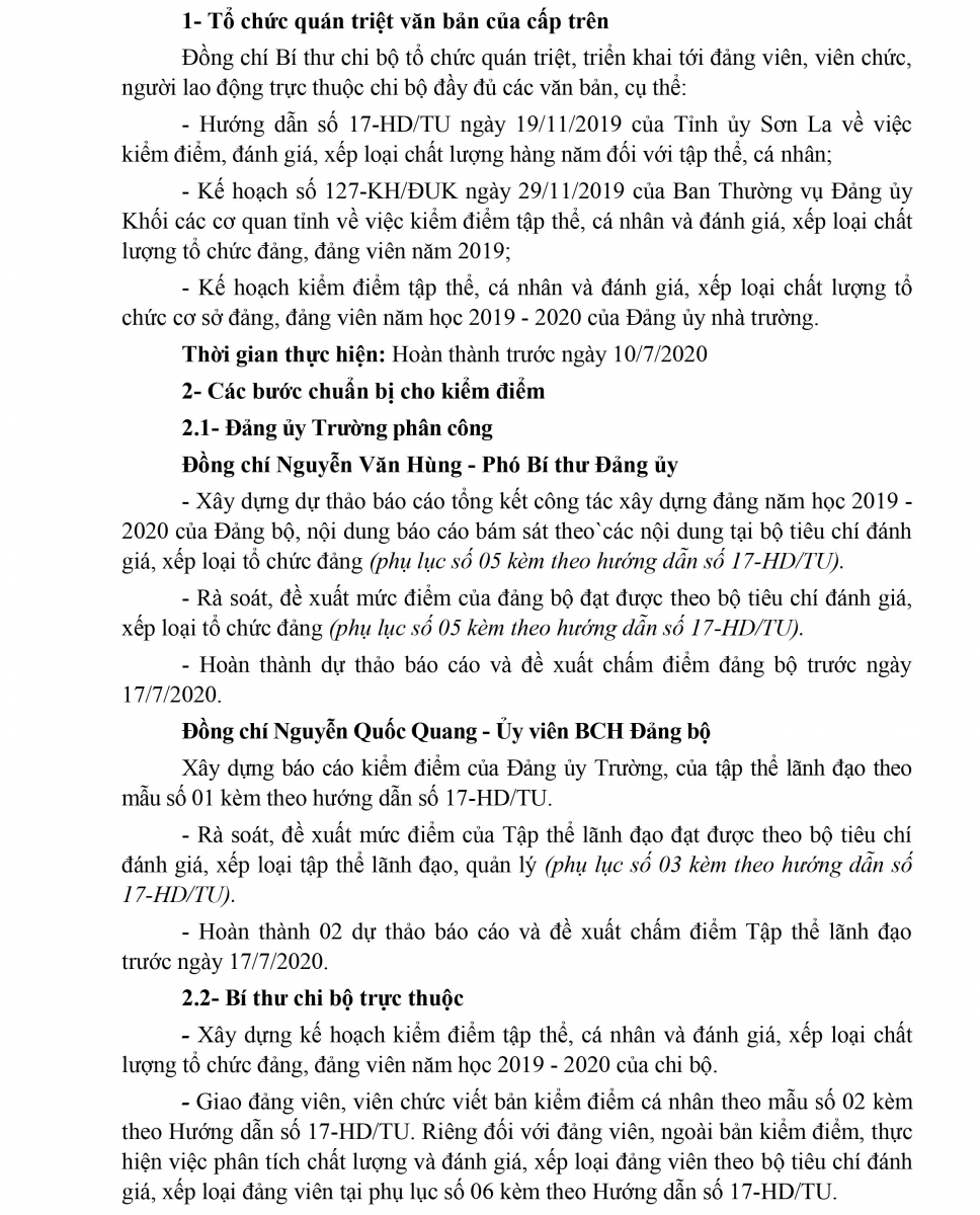 Kế hoạch kiểm điểm, đánh giá xếp loại chất lượng đối với tổ chức đảng, đảng viên; tập thể, cá nhân năm học 2019 - 2020