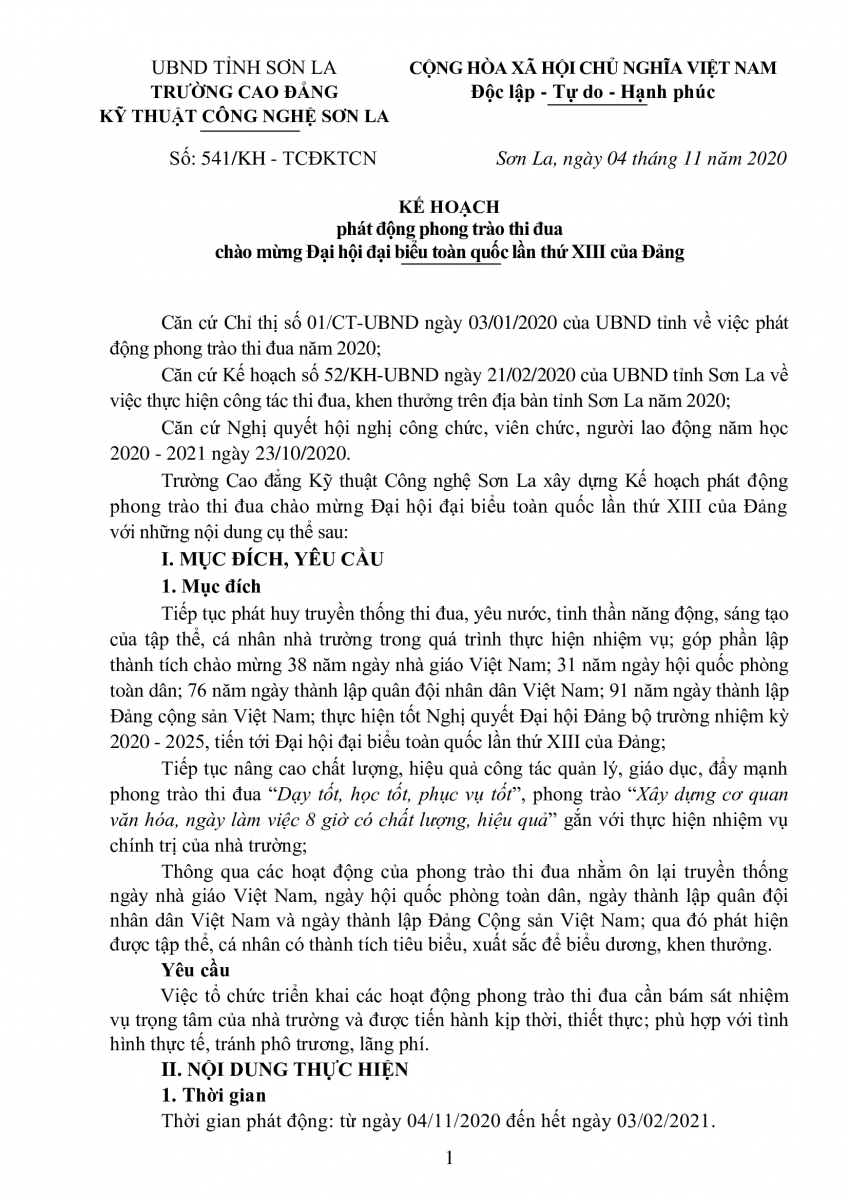 Kế hoạch phát động phong trào thi đua chào mừng Đại hội đại biểu toàn quốc lần thứ XIII của Đảng