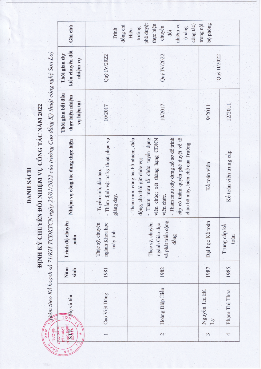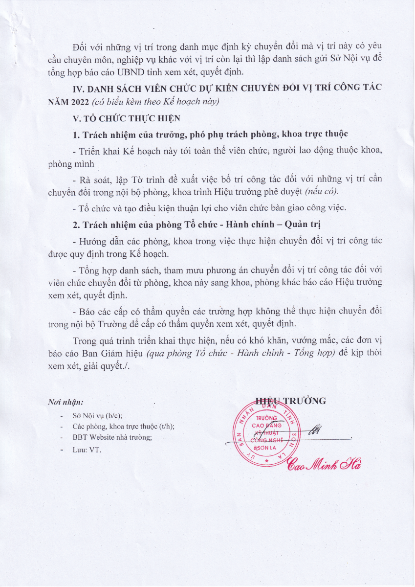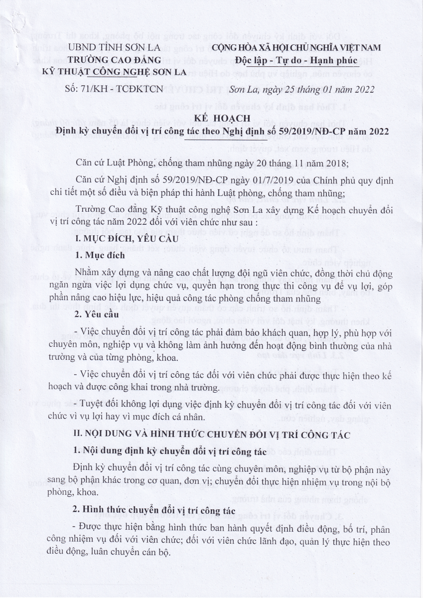 Kế hoạch số 71 ngày 25/01/2022 về định kỳ chuyển đổi vị trí công tác năm 2022