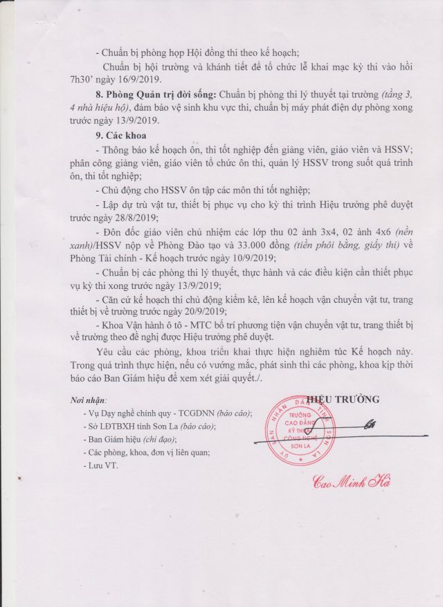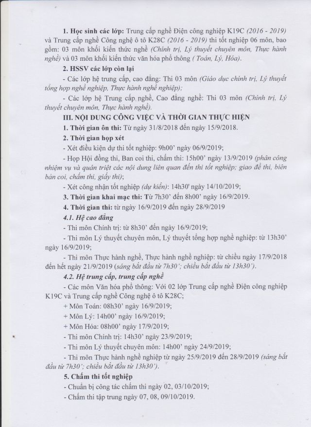 Kế hoạch thi tốt nghiệp năm học 2018 - 2019