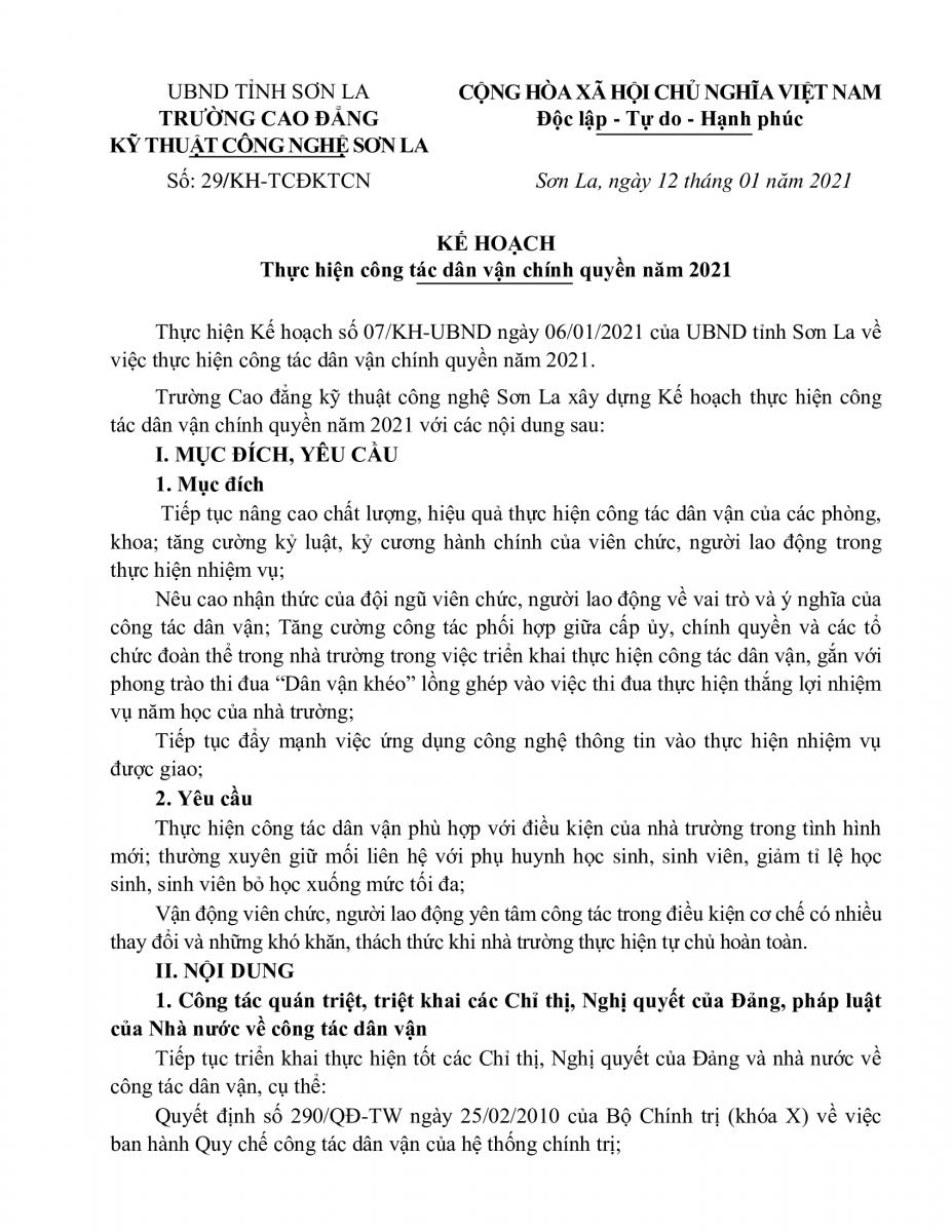 Kế hoạch thực hiện công tác Dân vận chính quyền năm 2021