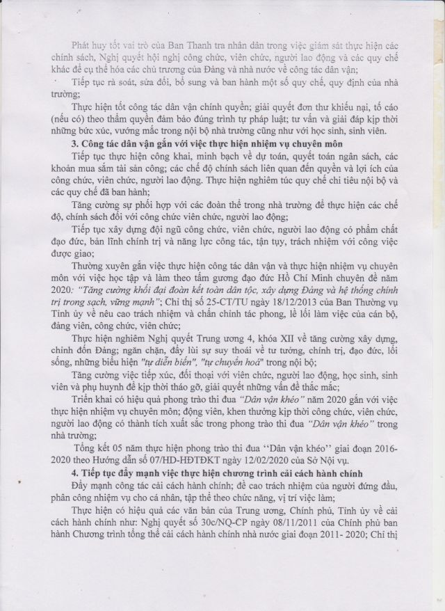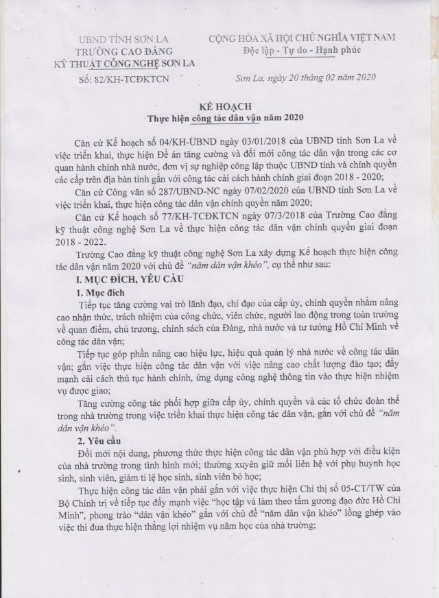 Kế hoạch thực hiện công tác dân vận năm 2020