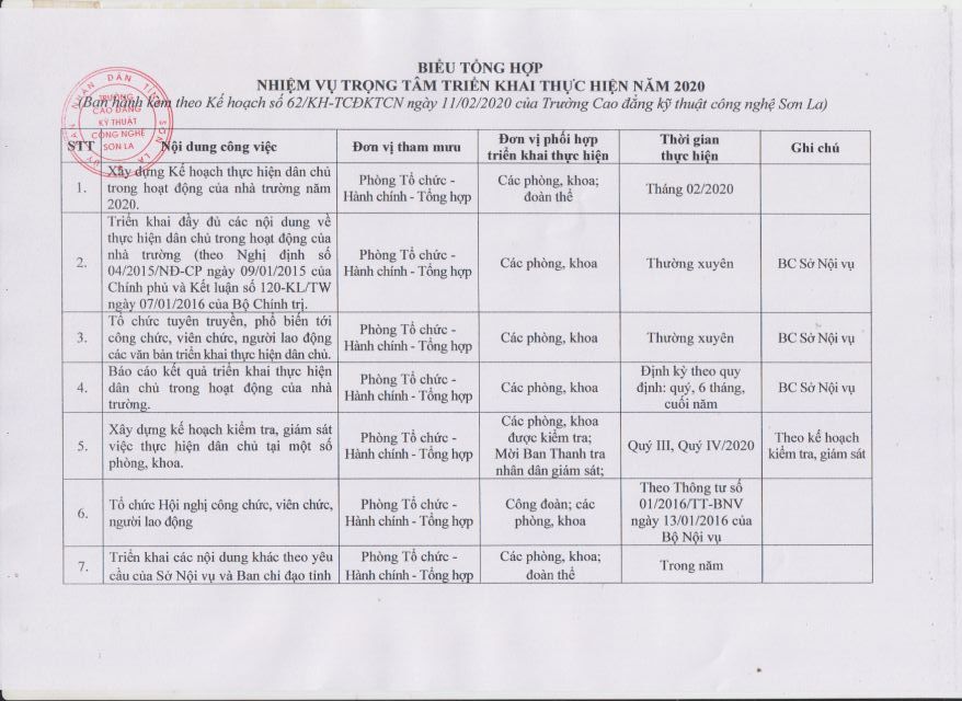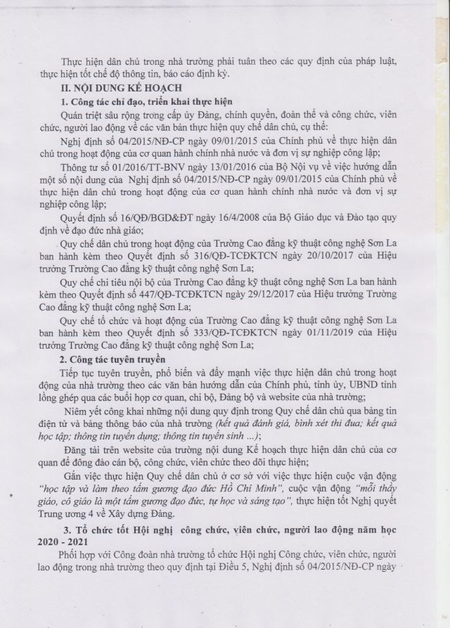 » Kế hoạch tổ chức xét thăng hạng chức danh nghề nghiệp viên chức năm 2020 của Trường Cao đẳng Kỹ thuật công nghệ Sơn La (02.10.2020)