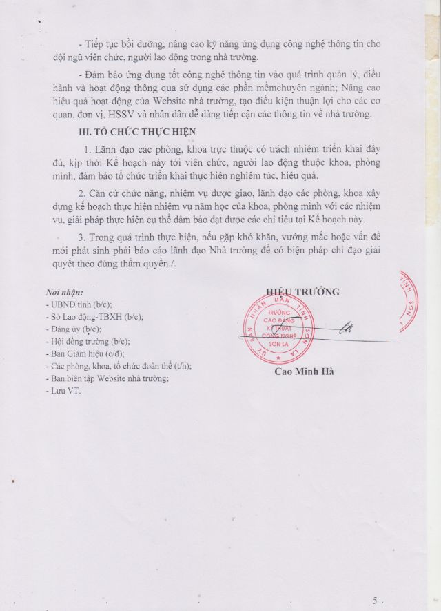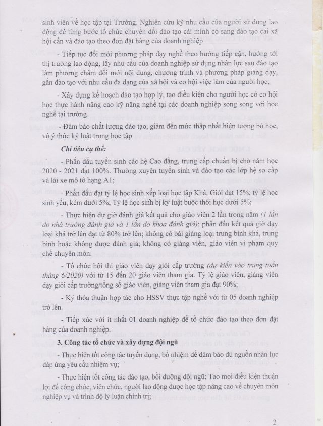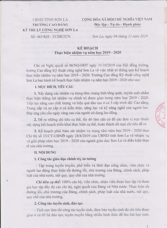 Kế hoạch thực hiện nhiệm vụ năm học 2019 - 2020
