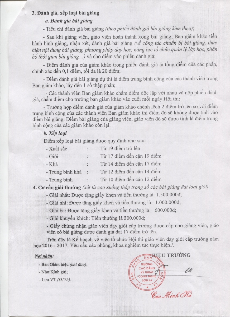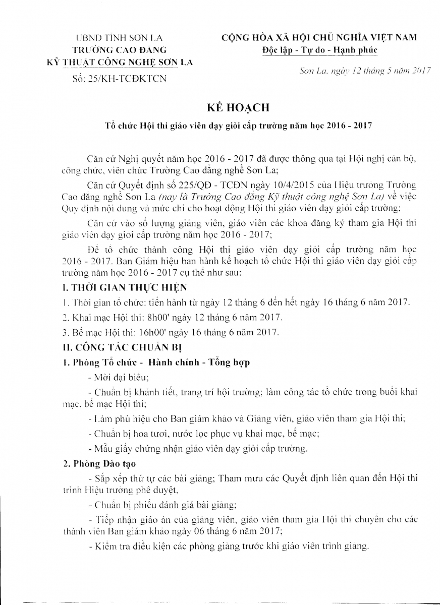 Kế hoạch tổ chức Hội thi giáo viên dạy giỏi cấp trường năm học 2016 - 2017