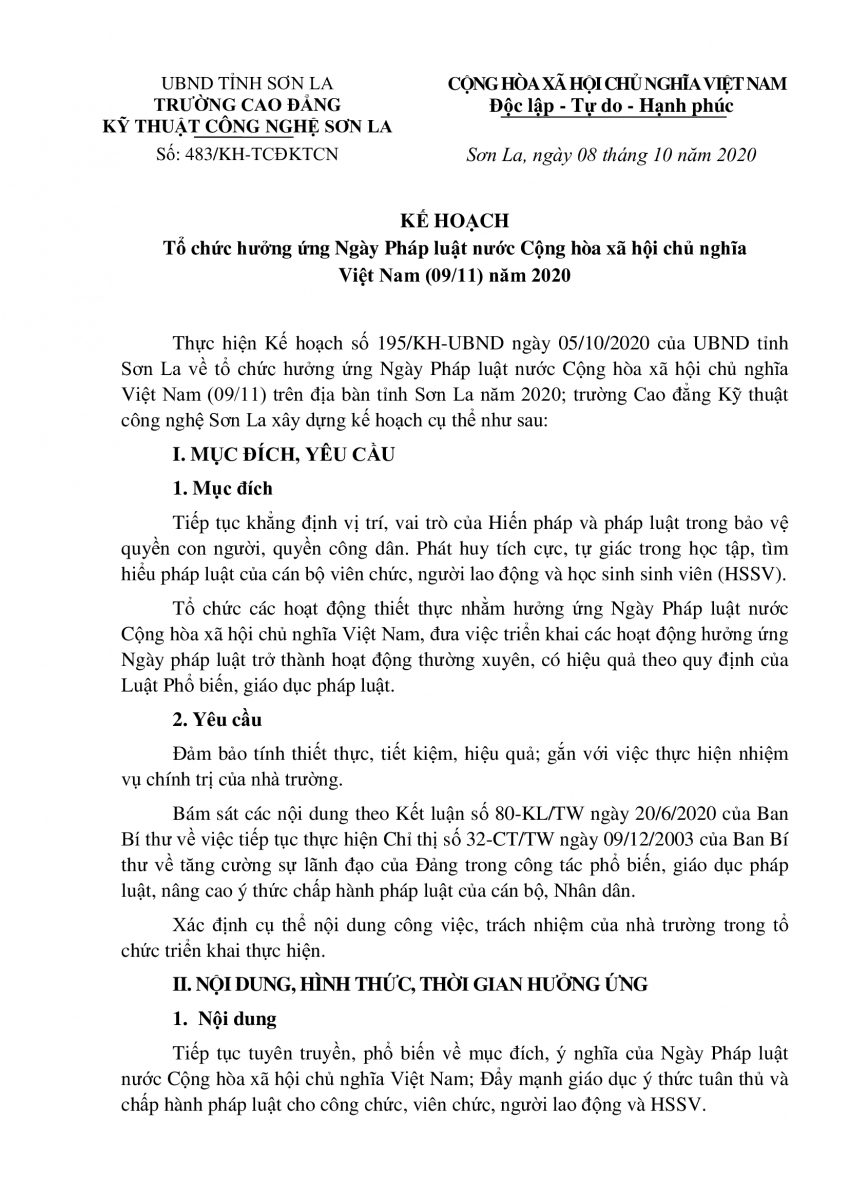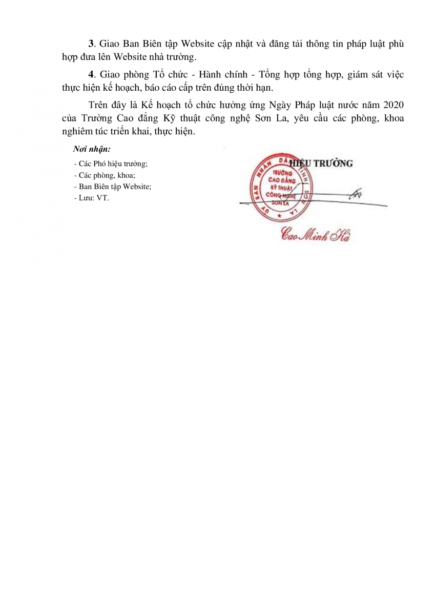 Kế hoạch tổ chức Ngày Pháp luật nước Công hòa xã hội chủ nghĩa Việt Nam năm 2020