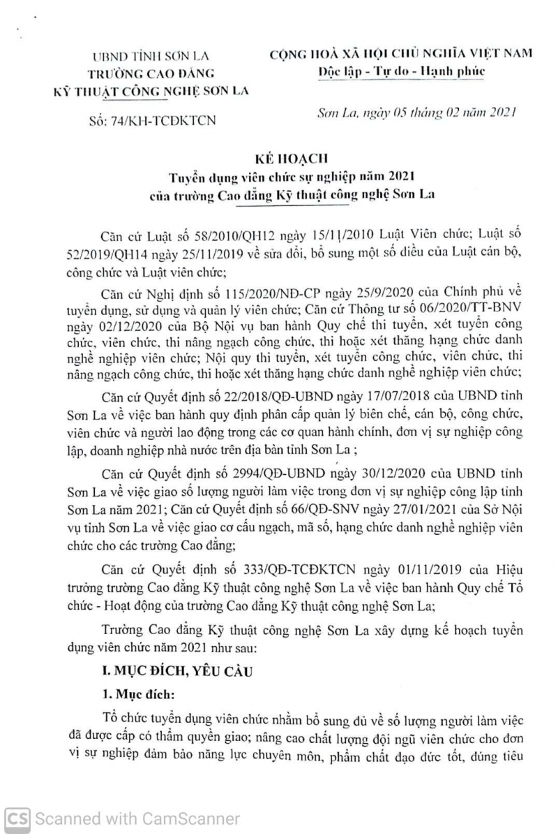 Kế hoạch tuyển dụng viên chức năm 2021