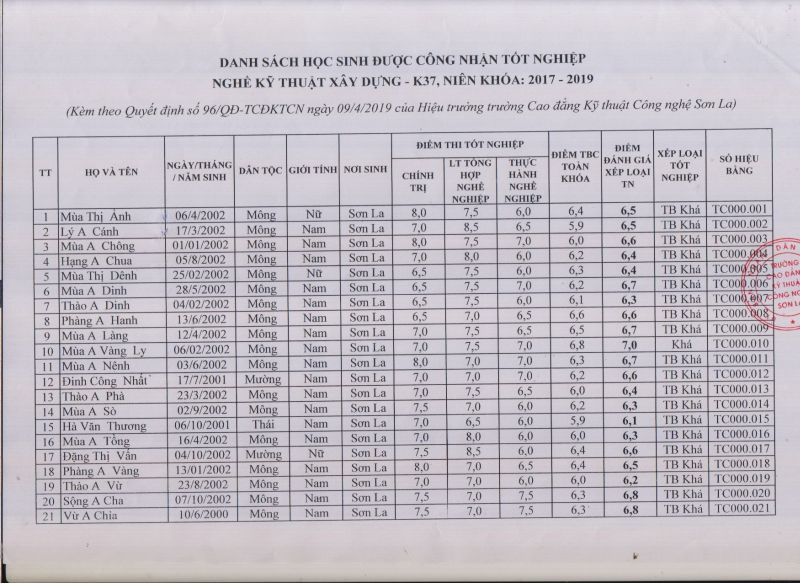 Kết quả tốt nghiệp, hệ trung cầp nghề kỹ thuật xây dựng K37