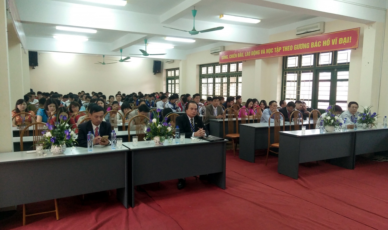 Toàn cảnh lễ khai giảng Năm học này Nhà trường có hơn 1500 học sinh, sinh viên. Trước những điều kiện thuận lợi cũng như những thách thức trước thềm năm học mới, để hoàn thành tốt nhiệm vụ năm học đồng chí Cao Minh Hà đã đưa ra 9 giải pháp để nhà trường tập trung thực hiện. Đặc biệt là công tác đào tạo, nhà trường tiếp tục đổi mới công tác giáo dục nghề nghiệp theo hướng tiếp cận, hướng tới thị trường lao động, lấy nhu cầu của doanh nghiệp sử dụng nhân lực của trường sau đào tạo làm phương châm đổi mới nội dung, chương trình và phương pháp giảng dạy phù hợp với yêu cầu trong giai đoạn mới, gắn đào tạo với nhu cầu đa dạng của xã hội và cơ hội việc làm của người học. Kết thúc bài phát biểu đồng chí Cao Minh Hà thay mặt BCH Đảng bộ; Ban giám hiệu chúc tập thể 117 cán bộ, giảng viên, giáo viên, nhân viên và toàn thể các em học sinh, sinh viên mạnh khoẻ, hoàn thành xuất sắc nhiệm vụ năm học.