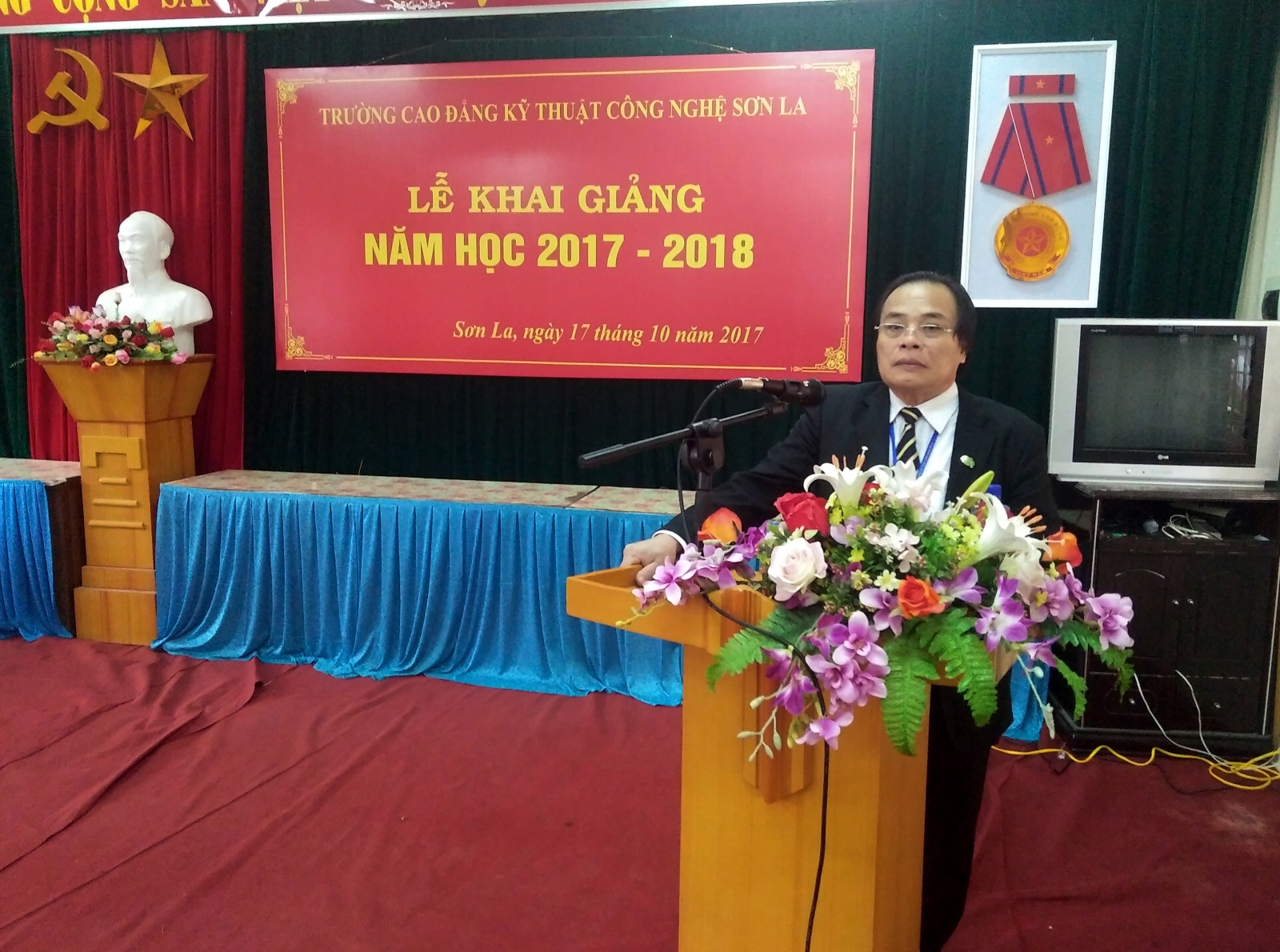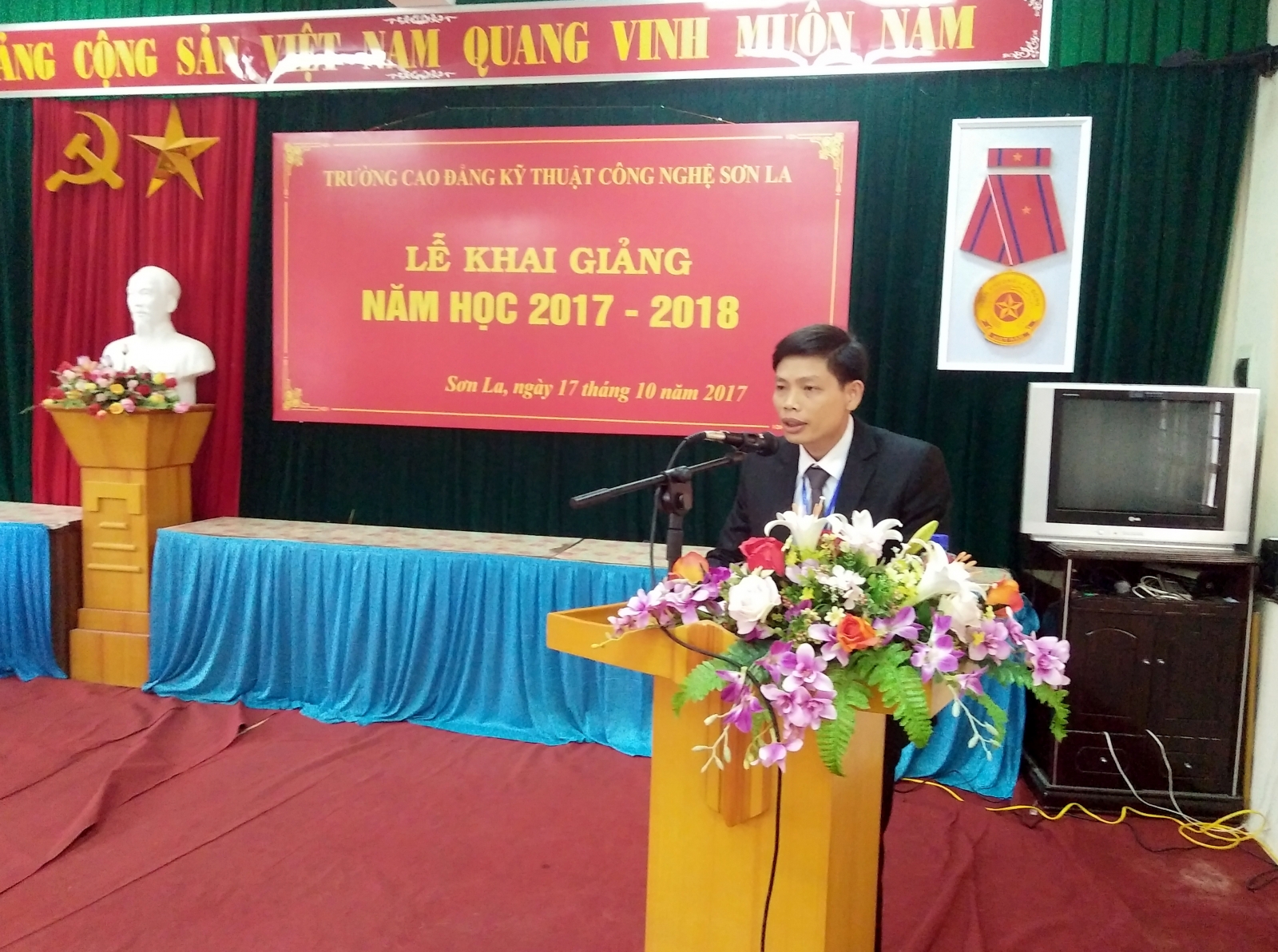 Ngày 17/10/2017, Trường Cao đẳng Kỹ thuật công nghệ Sơn La đã tổ chức Lễ khai giảng năm học 2017- 2018. Dự Lễ khai giảng có đồng chí Cao Minh Hà – Bí thư Đảng ủy, Hiệu trưởng nhà trường; Các đồng chí trong BCH Đảng bộ, BGH, giảng viên, giáo viên, nhân viên và toàn thể các em học sinh khóa mới tại trường.