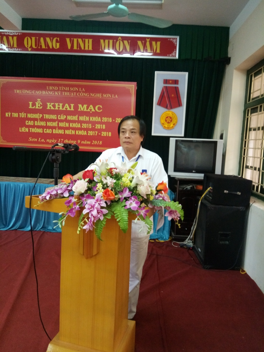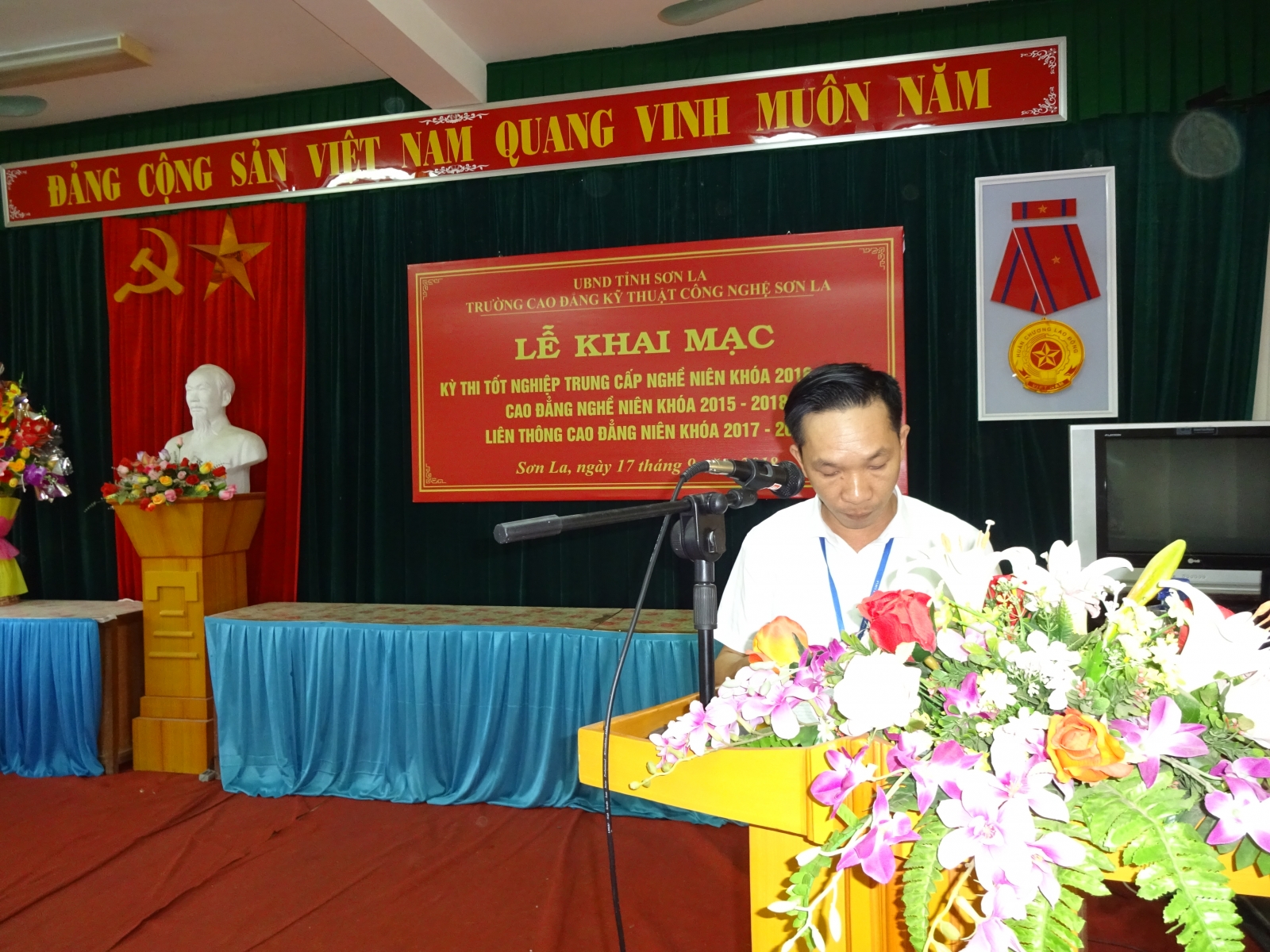 » Học tập, quán triệt và triển khai thực hiện các nghị quyết Hội nghị lần thứ 7, Ban Chấp hành Trung ương Đảng, khóa XII (16.08.2018 ) » Hội nghị tổng kết năm học 2017 - 2018 (24.07.2018 ) » Bế mạc Hội thi giáo viên dạy giỏi năm học 2017 - 2018 (18.05.2018 ) » Khai mạc Hội thi giáo viên dạy giỏi năm học 2017 - 2018 (18.05.2018 ) » Họp tất niên xuân Mậu Tuất 2018 (05.02.2018 ) » Học tập, quán triệt và triển khai thực hiện các nghị quyết Hội nghị lần thứ 6, Ban Chấp hành Trung ương Đảng, khóa XII (05.02.2018 ) » Đại hội Công đoàn cơ sở lần thứ XX nhiệm kỳ 2017 – 2022 (12.12.2017 ) » Tọa đàm kỷ niệm 35 năm ngày Nhà giáo Việt Nam 20/11. (27.11.2017 ) » Hội nghị Công chức, viên chức năm học 2017 - 2018 (01.11.2017 ) » Khai giảng năm học mới 2017 - 2018 (21.10.2017 ) Sáng ngày 17/9/2018,Trường Cao đẳng kỹ thuật công nghệ Sơn La đã long trọng tổ chức khai mạc kỳ thi tốt nghiệp Cao đẳng nghề, niên khóa 2015-2018; Cao đẳng liên thông khóa 2017-2018 và Trung cấp nghề, niên khóa 2016-2018. Dự lễ khai mạc có đồng chí Cao Minh Hà - Bí thư Đảng bộ, Hiệu trưởng nhà trường; Các trưởng, phó phòng, khoa chức năng, các thầy, cô giáo trong Hội đồng thi, Ban coi thi, chấm thi và 70 học sinh, sinh viên hệ chính quy tại trường đại diện cho 343 HSSV tham dự thi tốt nghiệp năm 2018.