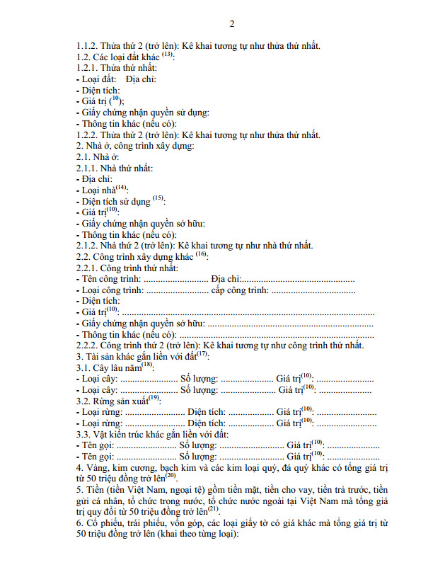 Mẫu bản kê khai và hướng dẫn việc kê khai tìa sản